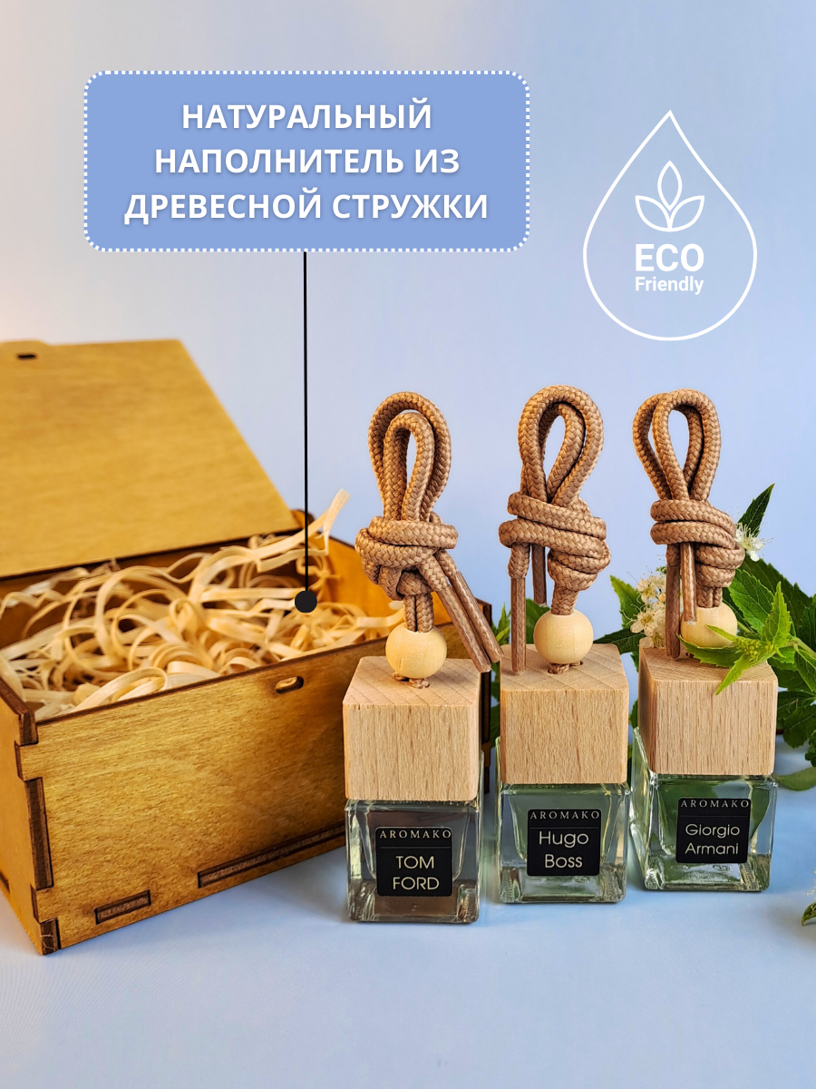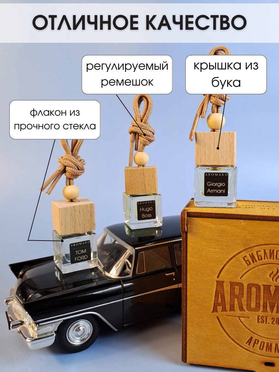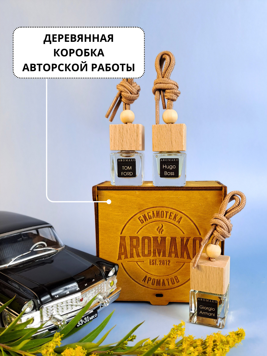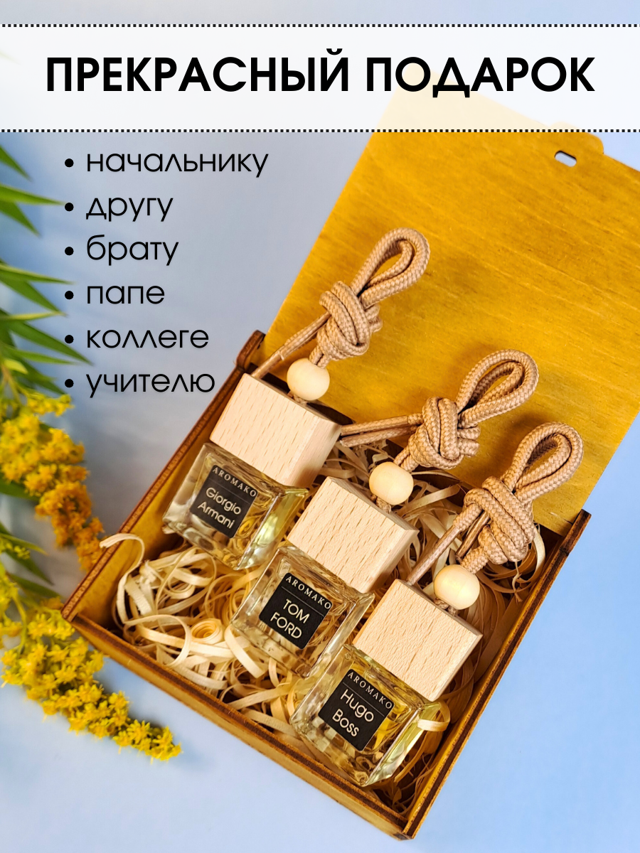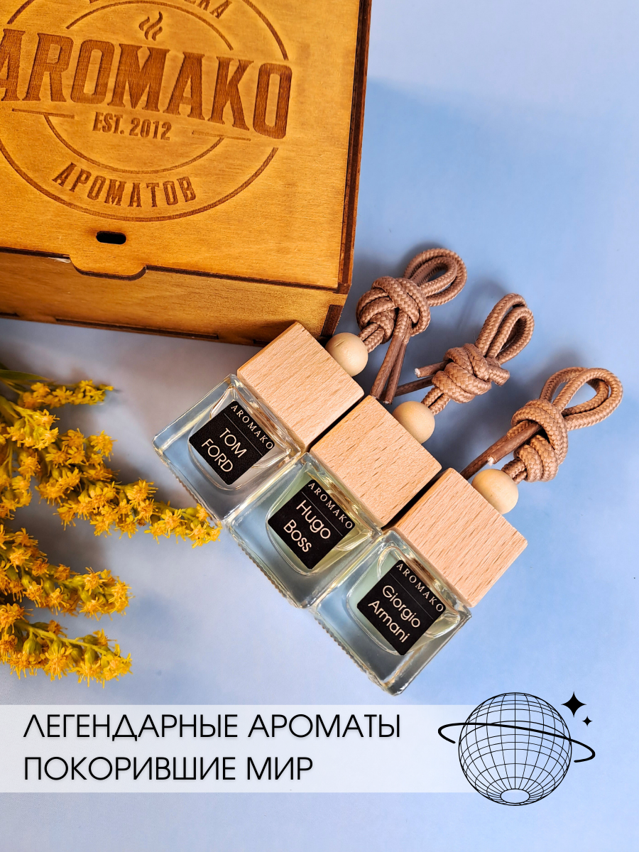 СохранитьПодарочный набор автопарфюмов Табак Ваниль, Хуго Босс, Армани ароматизатор в машину 3 шт ,освежитель воздуха в авто AROMAKO интересное: