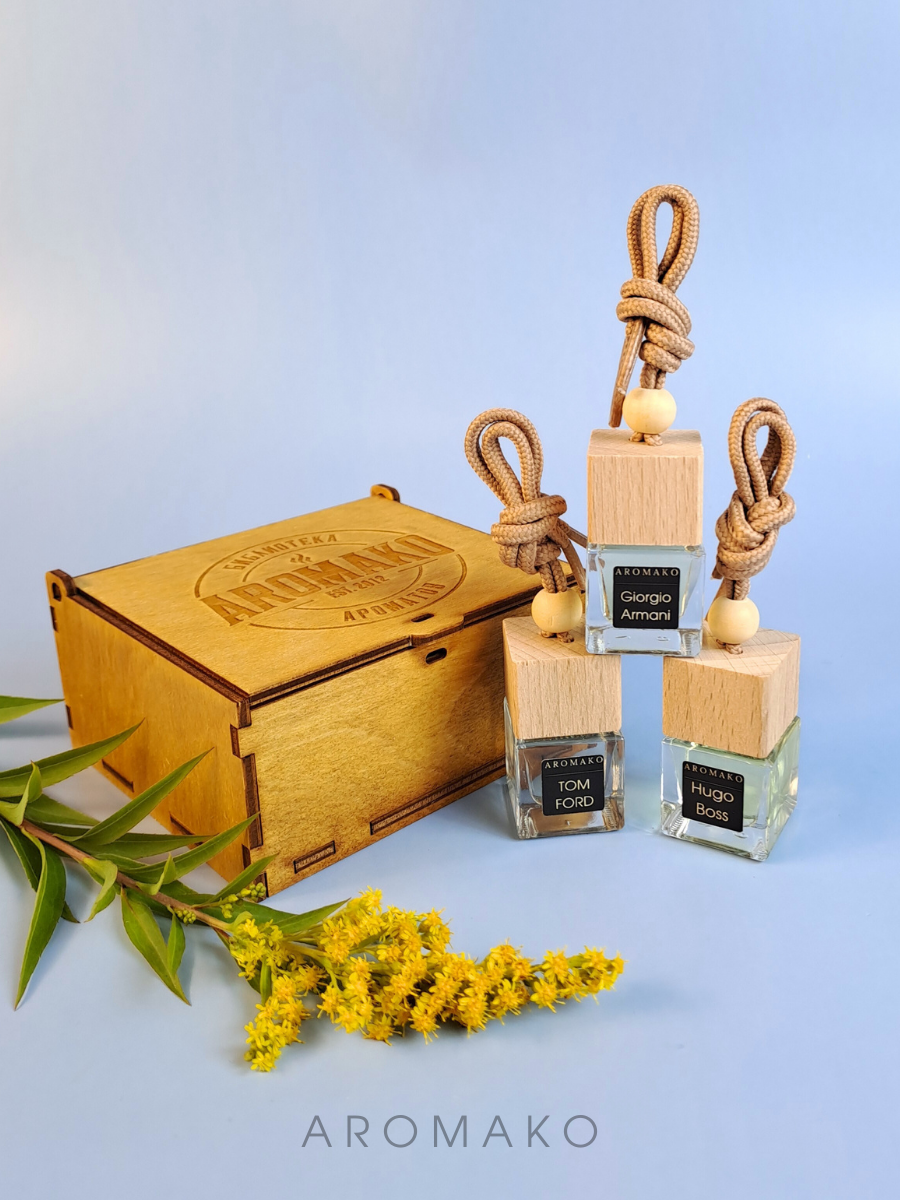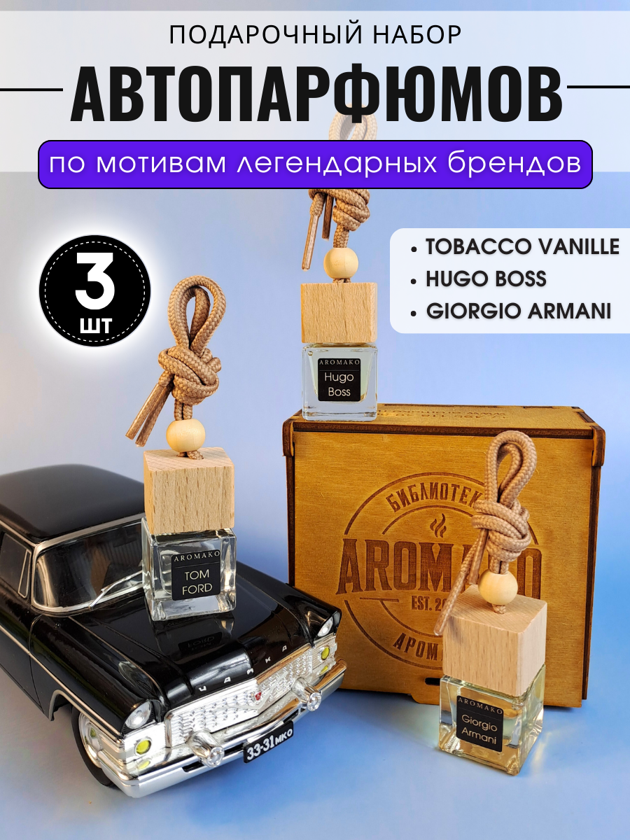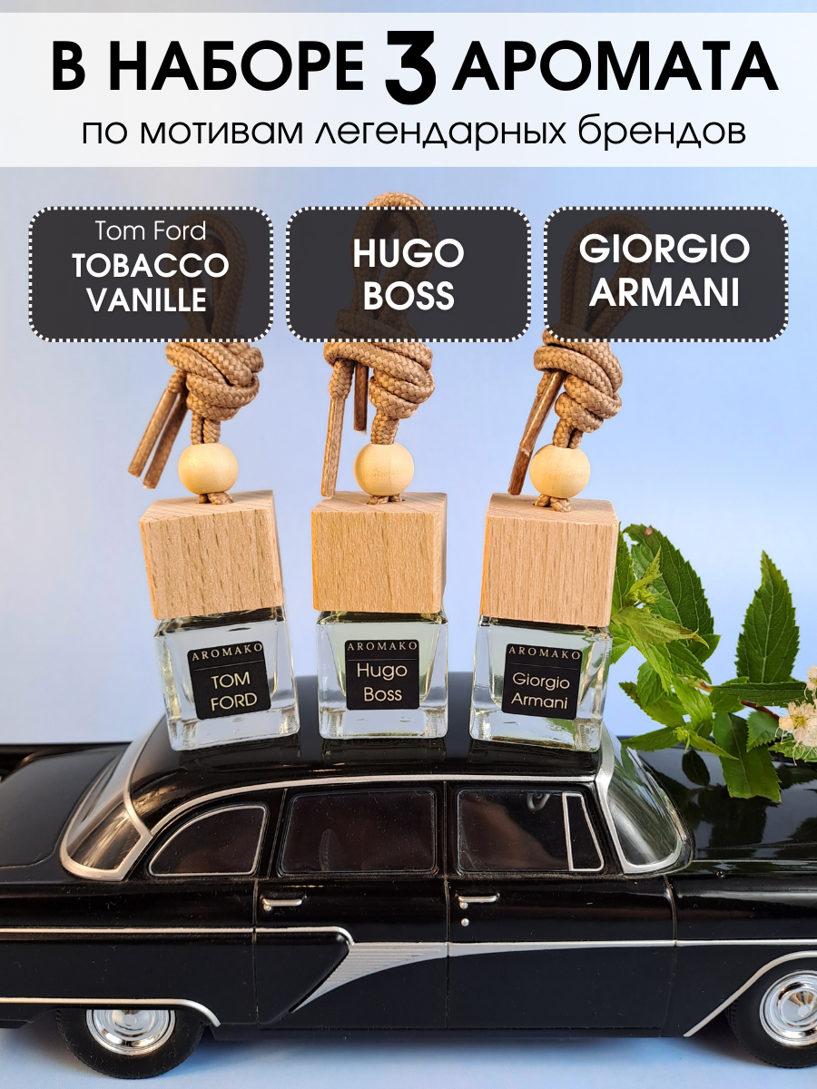 Купить Подарочный набор автопарфюмов Табак Ваниль, Хуго Босс, Армани ароматизатор в машину 3 шт ,освежитель воздуха в авто AROMAKO