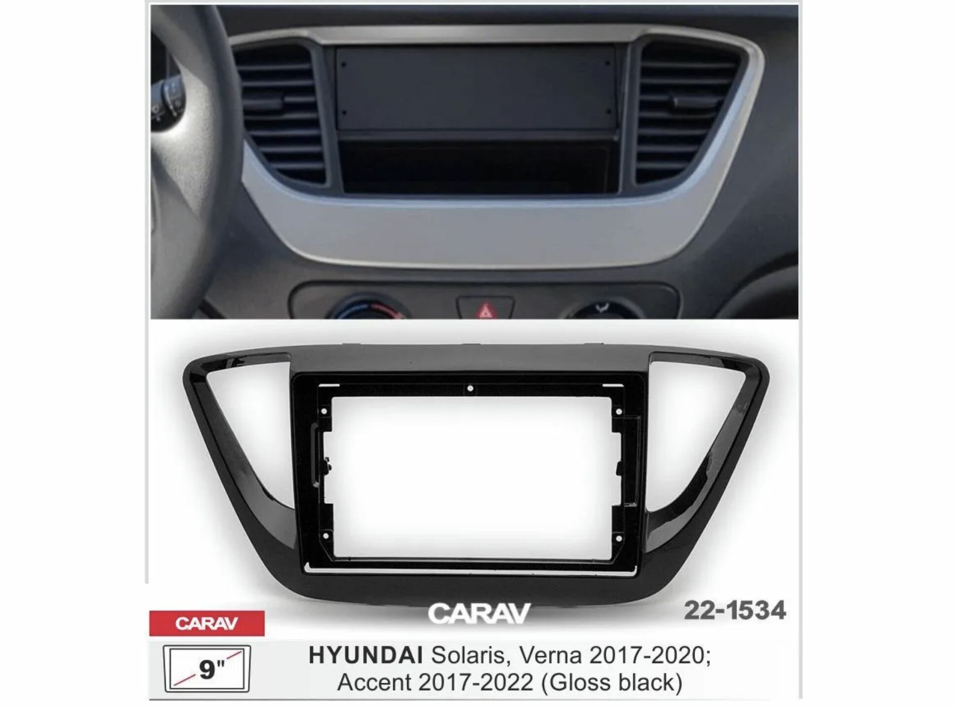 Купить Переходная рамка Hyundai Solaris 2 2017-2020 черная глянцевая 9 дюймов (230:220:130 мм) carav 22-1534