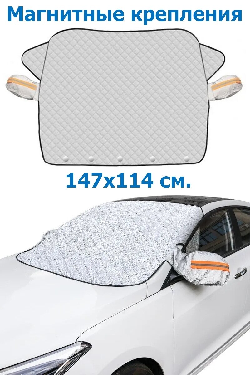 Накидка на лобовое стекло автомобиля от снега, дождя, наледи и солнца, Чехол для лобового стекла с магнитами L 145x110 см.