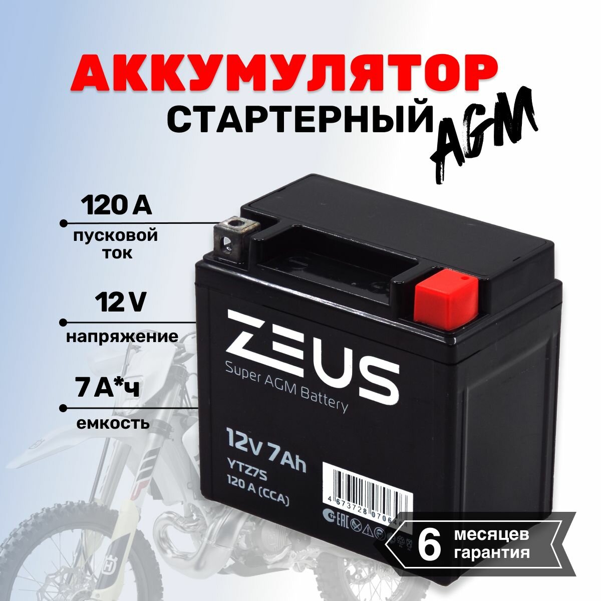 Аккумулятор стартерный agm для мотоцикла/квадроцикла/скутера ZEUS SUPER AGM YTZ7S (12V/7Ah) (UTZ7S, СТ 1207.2)