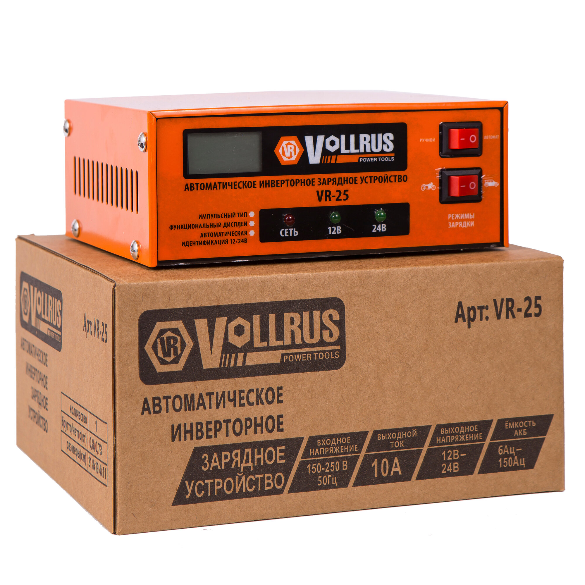 Зарядное устройство импульсное инверторное для АКБ 20-100А; 12/24В; 10А; автомобильное VollRus, VR-25 интересное: