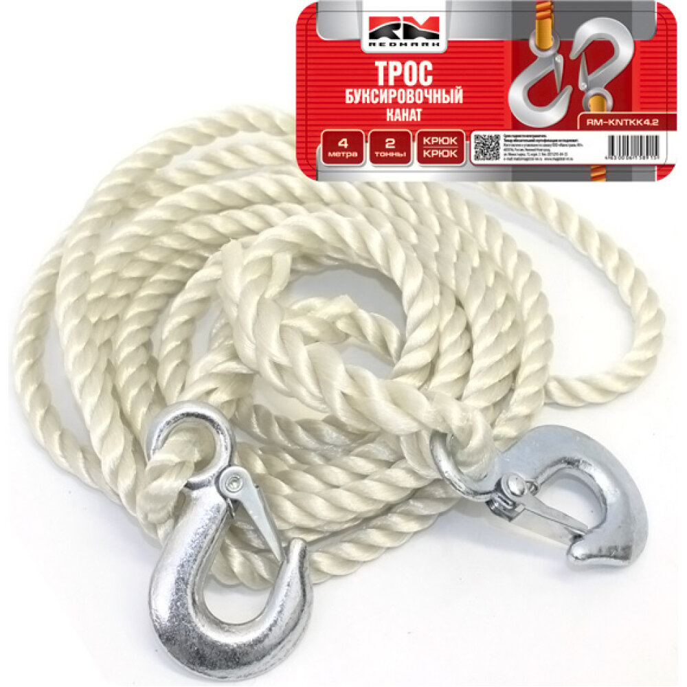 Трос буксировочный канат RedMark 4 м. 2 т. крюк/крюк интересное: