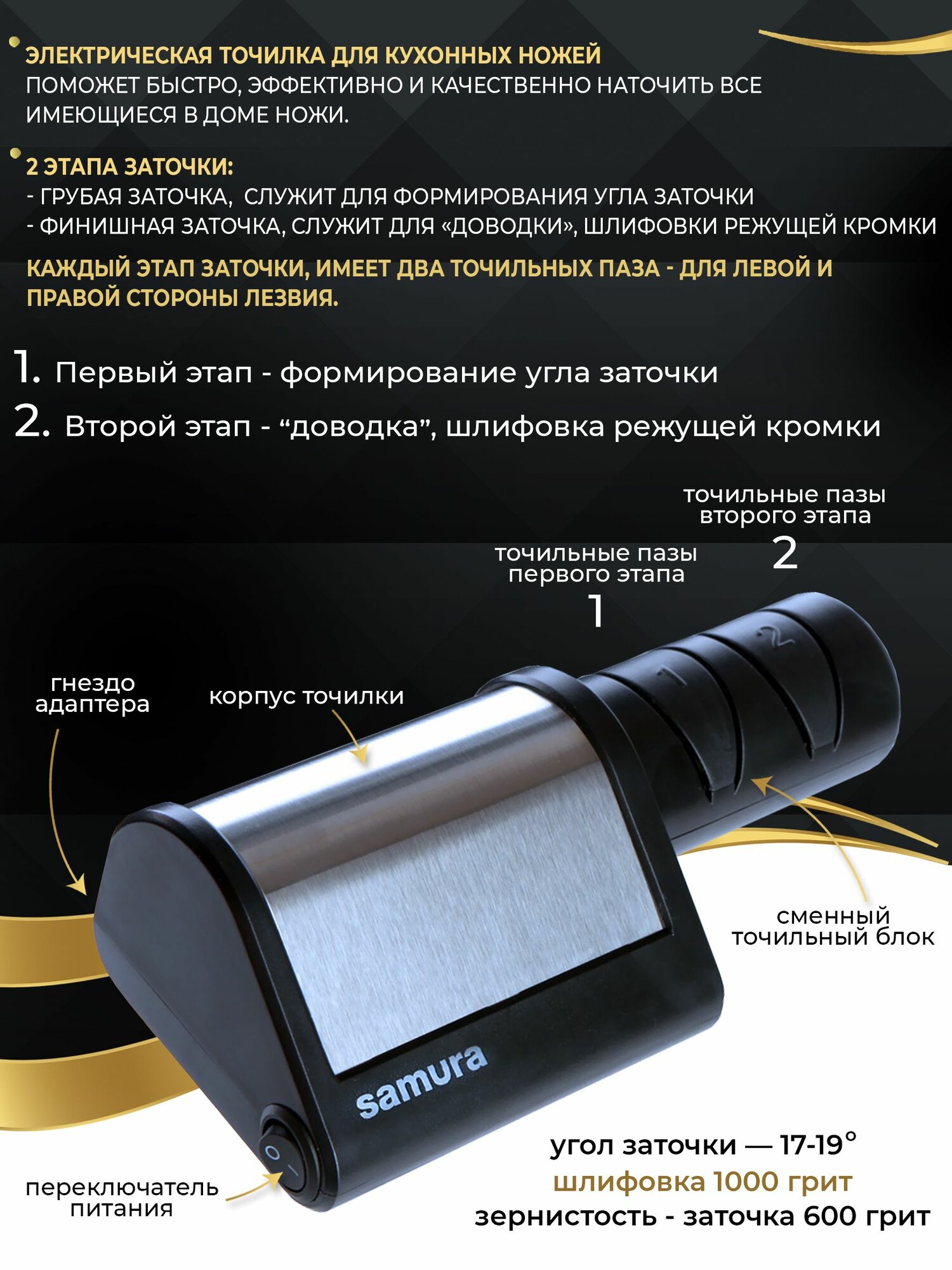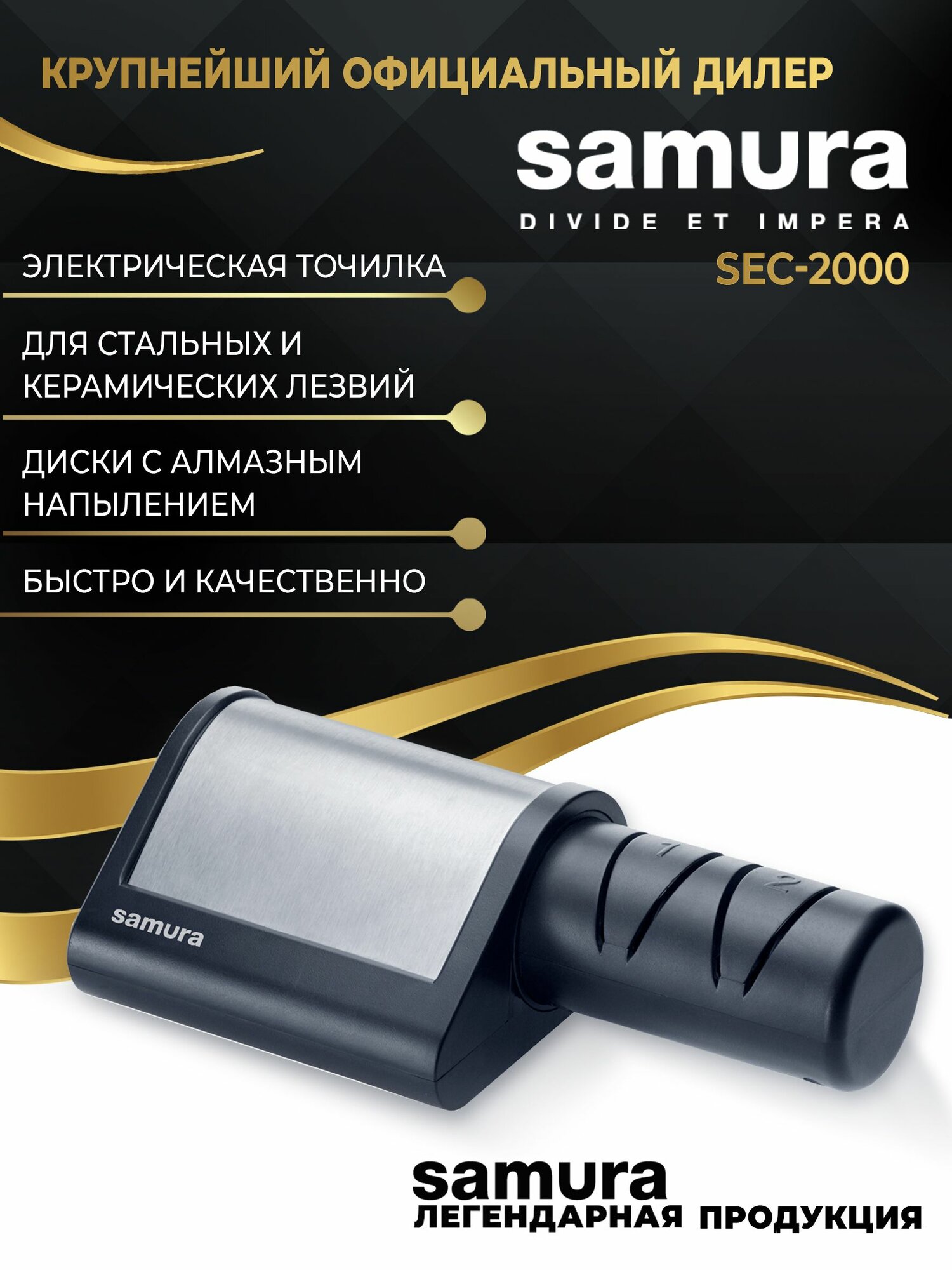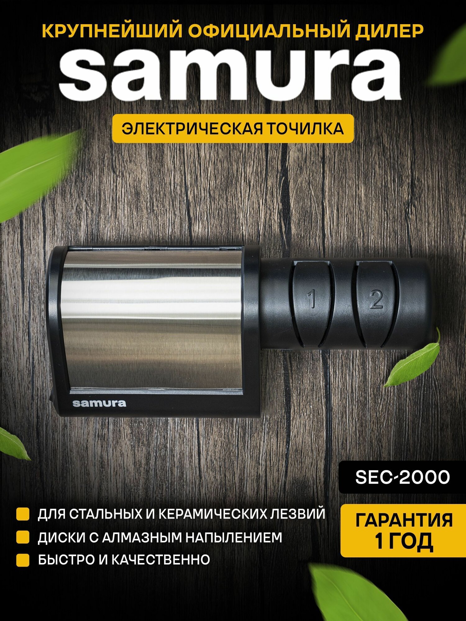 Электрическая точилка для ножей алмазная Samura SEC-2000 (для керамических и стальных ножей)