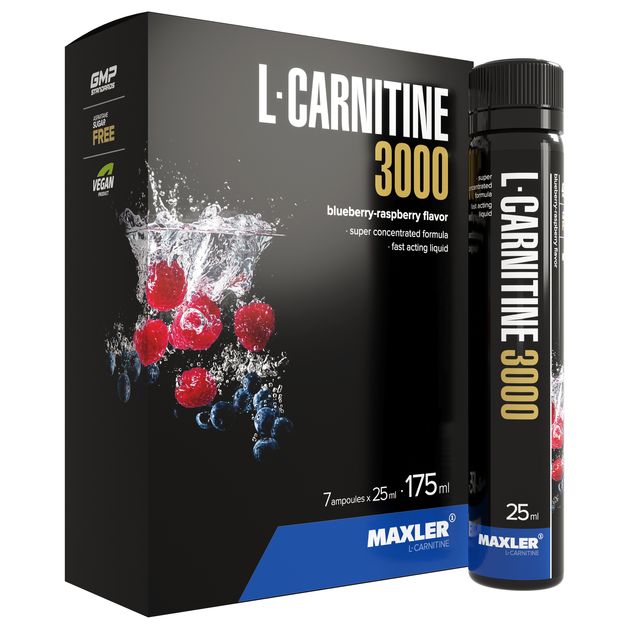 Купить Maxler L-карнитин 3000 7x25 мл, вкус "Черника-Малина"