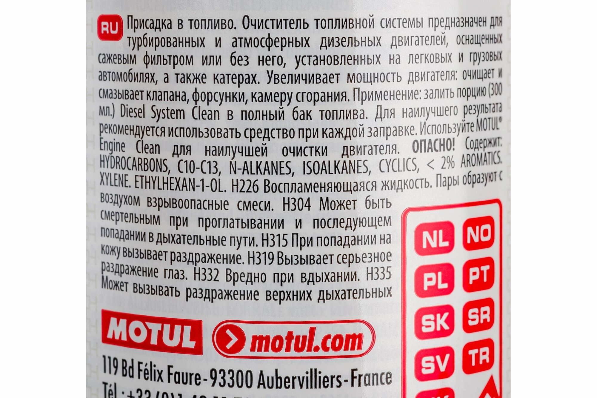 MOTUL 108117 Очиститель топливной системы дизельного двигателя MOTUL DIESEL SYSTEM CLEAN (0,3л)