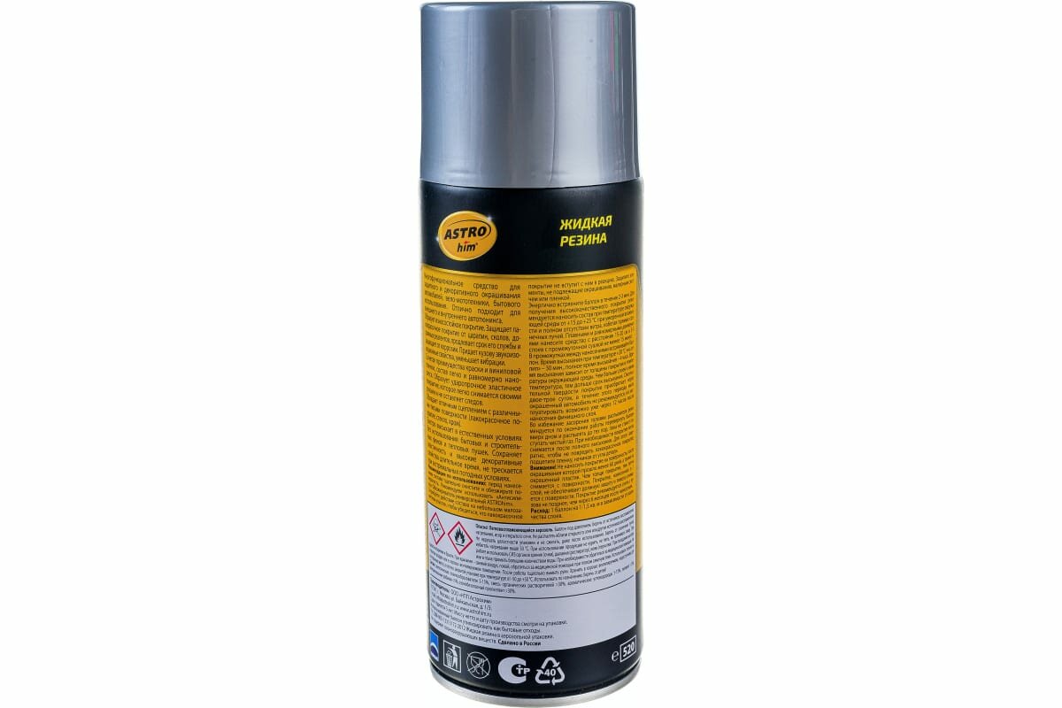 Аэрозольная жидкая резина серебристая для авто быстросохнущая универсальная высокопрочная ASTROhim