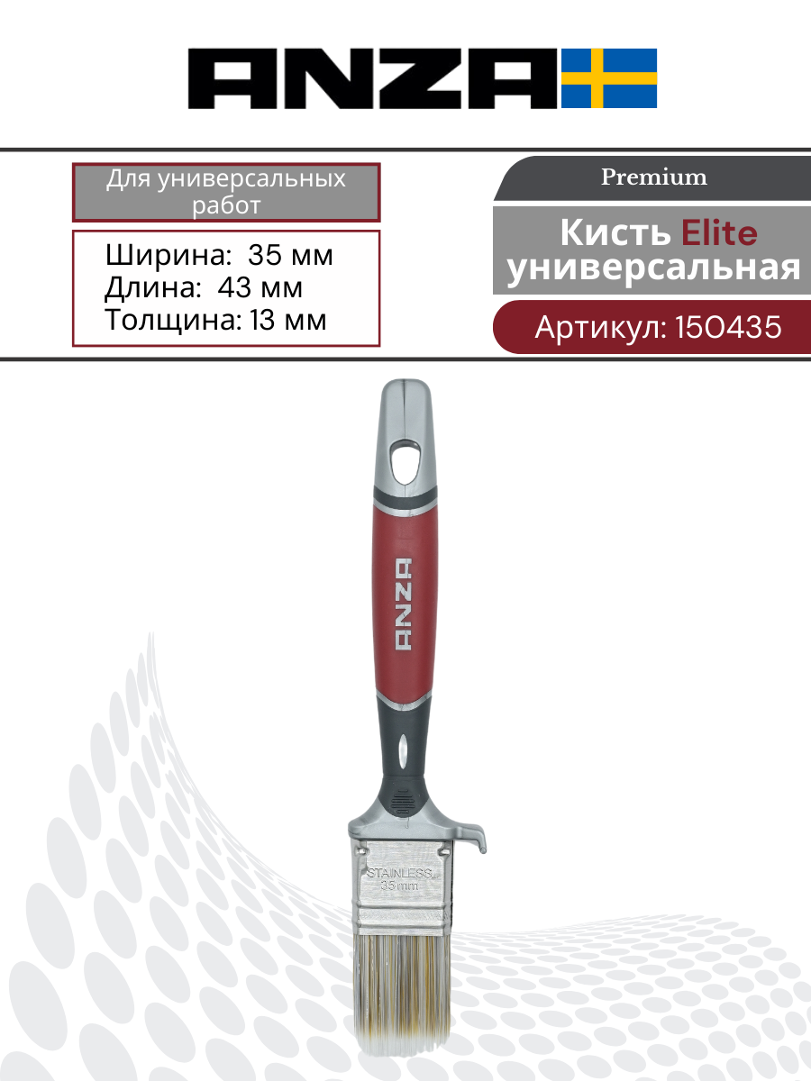 СохранитьКисть плоская малярный синтетика Anza Elite 35 мм, 150435 интересное: