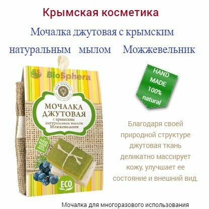 Мочалка джутовая + натуральное мыло "Можжевельник". 100% натуральный товар. Крымская косметика.