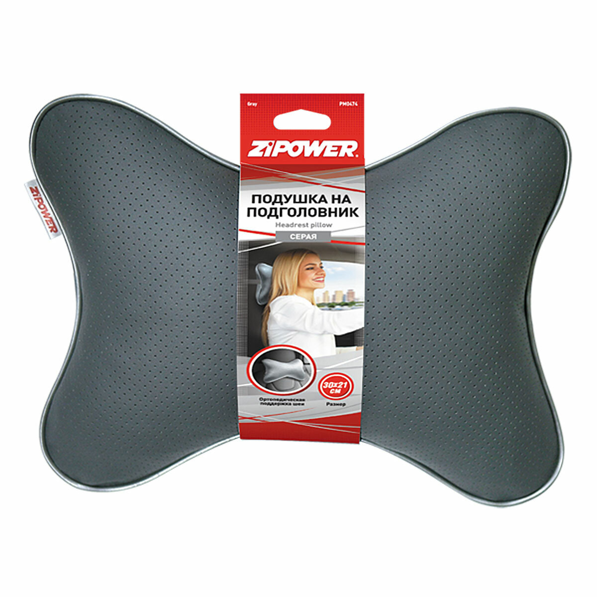 Подушка на подголовник "косточка" 30х21см экокожа серая ZIPOWER PM0474