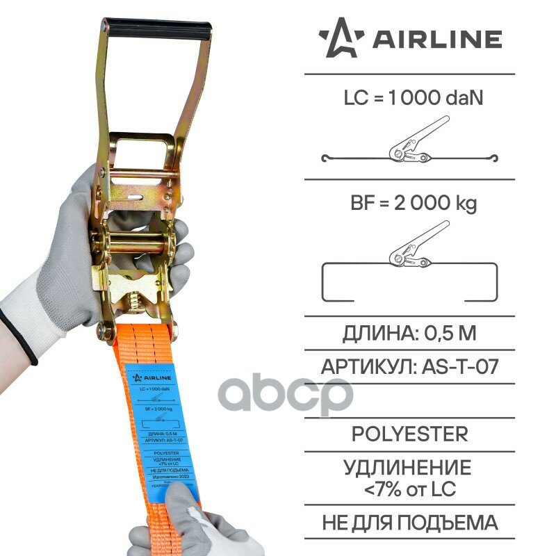 AIRLINE as-t-07 (AST07) ремень крепления груза с храповиком 10 м 2 т (as-t-07)