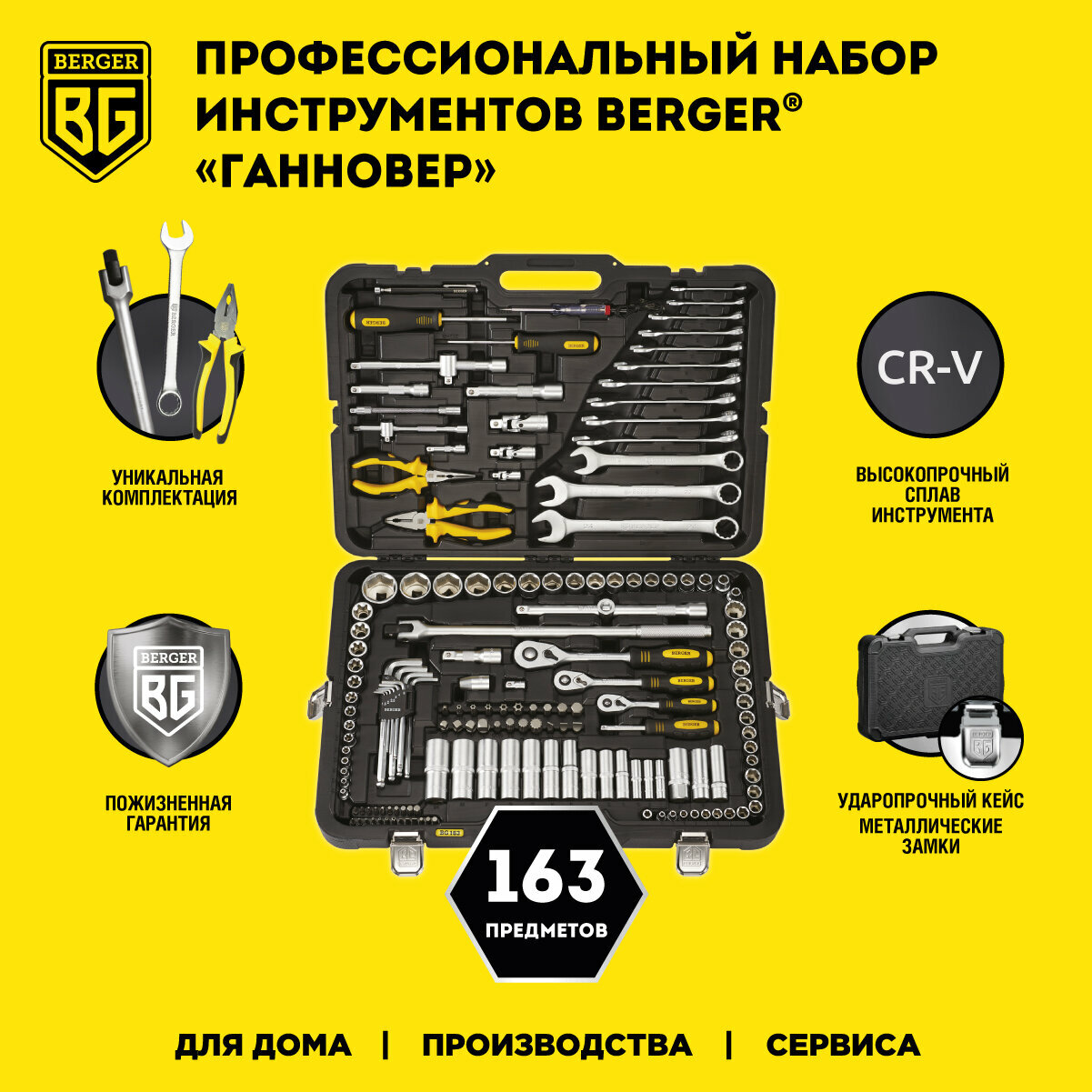 Набор инструмента профессиональный BERGER 163 предм ганновер BG163-121438, 1159317
