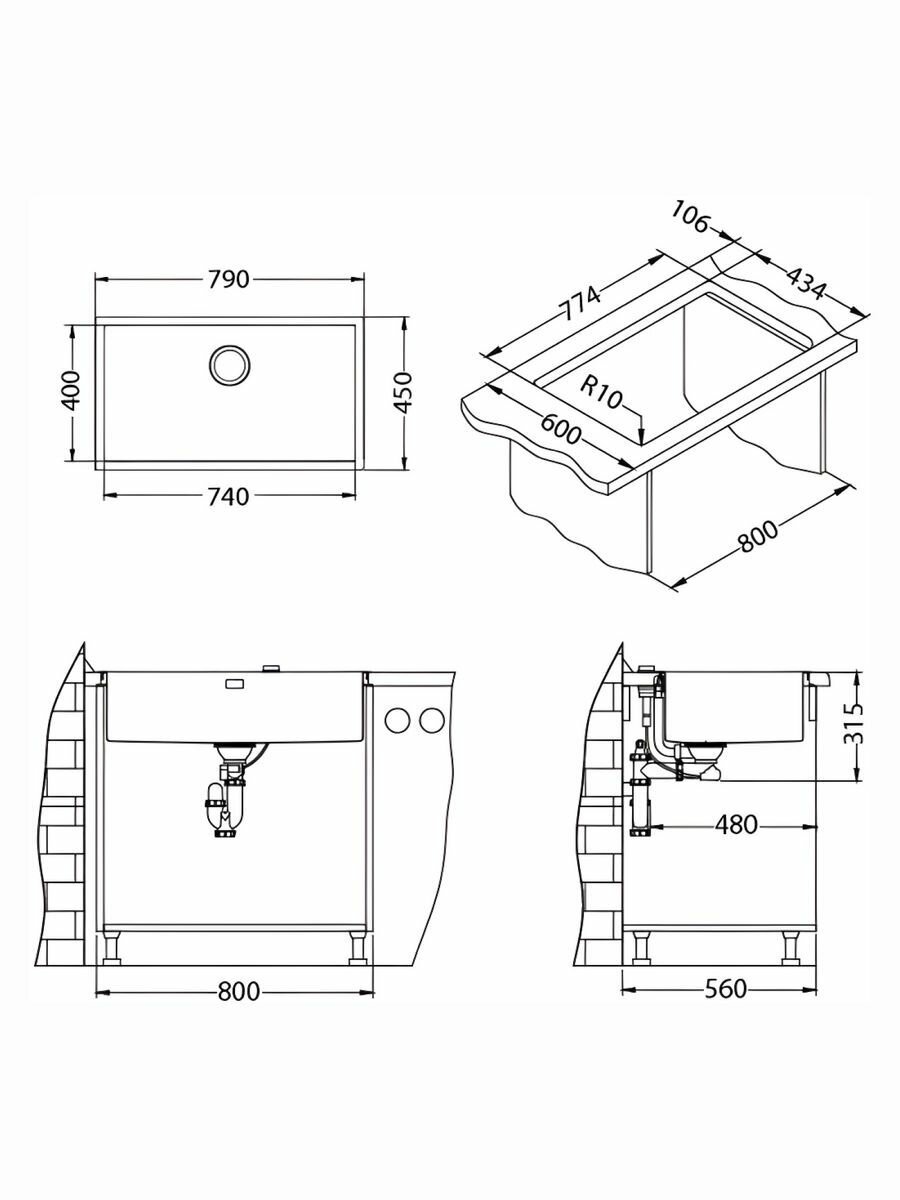 Мойка QUADRIX MONARCH 60 ANTRACIT 740x400x200