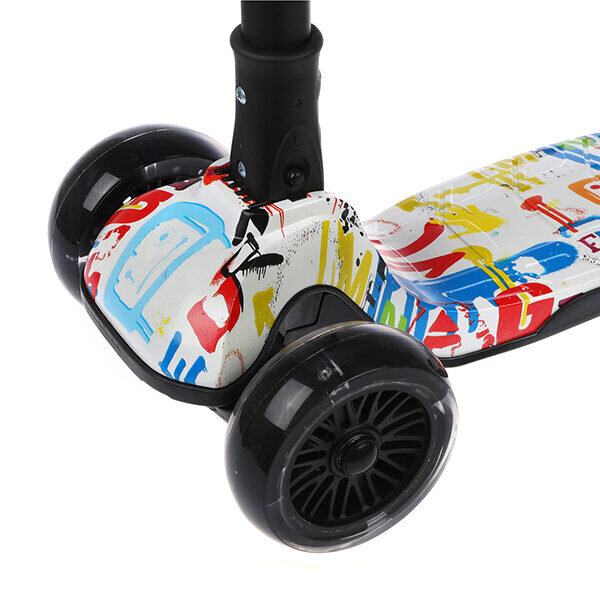 Самокат MobyKids, складной, широкая дека и колесо, 120 мм PU, свет, принт
