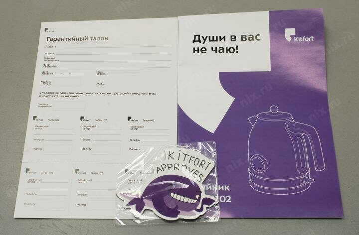 Металлический корпус, стильный дизайн. Чайник не имеет запаха. Достаточно лёгкий и компактный при хорошем объёме. Шум при нагревании воды не заметен. При закипании автоматически отключается. Вода закипает быстро, сохраняет тепло. Функциональный носик - вода не проливается мимо. Удобная симпатичная крышка, просто снимается и достаточно плотно прилегает в закрытом состоянии. Очень эргономичная ручка, легко манипулировать чайником, и это большой плюс. Надпись на упаковочной коробке «Души в Вас не чаю!» так и манит собраться вечером всей семьёй и насладиться свежезаваренным ароматным чаем. Ну и, конечно же, неожиданным бонусом оказался коллекционный магнит Kitfort. Очень приятно! Пользуемся с удовольствием! Всем рекомендуем! Время пить чай! |