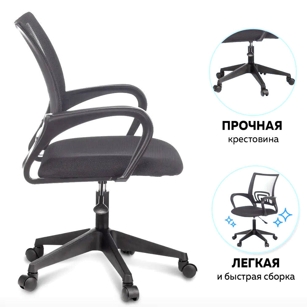 Кресло компьютерное Бюрократ CH-695NLT с газлифтом, Чёрный (ткань)/Чёрный (сетка)/Чёрный (пластик)
