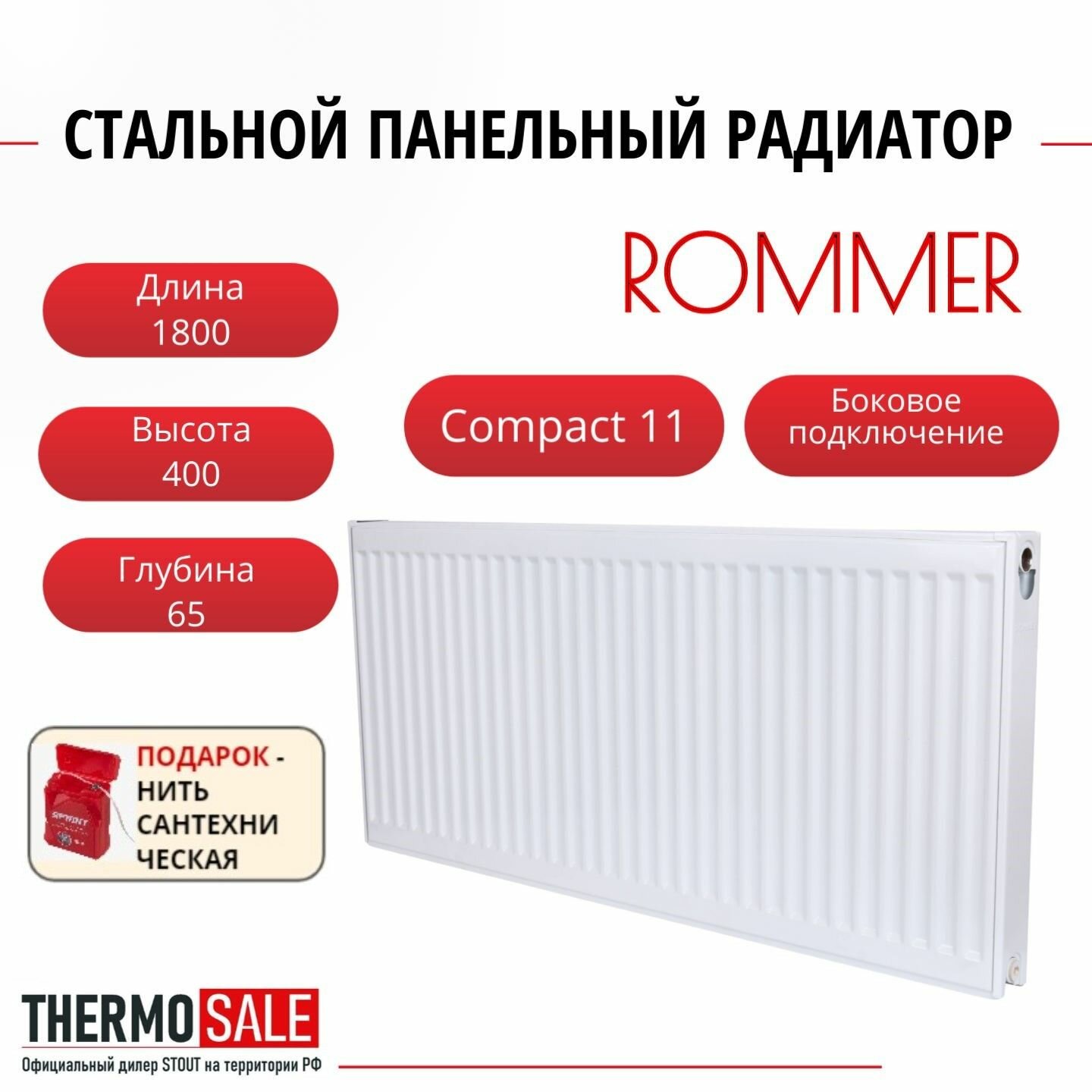 Купить Радиатор стальной панельный ROMMER 400х1800 боковое подключение Compact 11/400/1800 Нить сантехническая