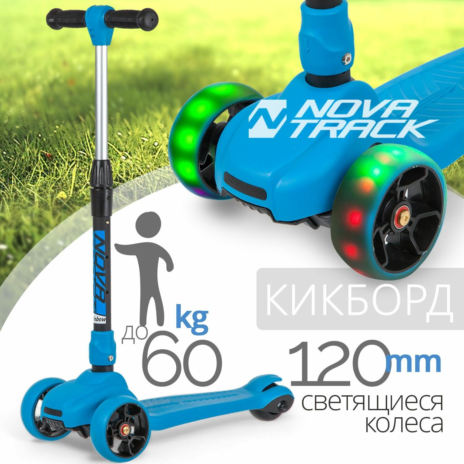 Купить Самокат-кикборд Novatrack RainBow, Синий 120C.RAINBOW.BL20
