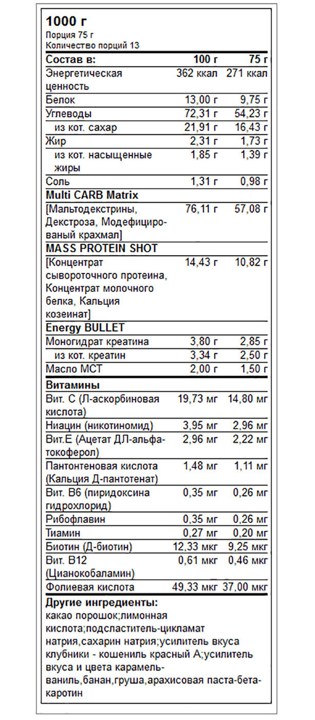СохранитьГейнер для набора массы, 1 кг, Trec Nutrition Magnum 8000, вкус ваниль-карамель интересное: