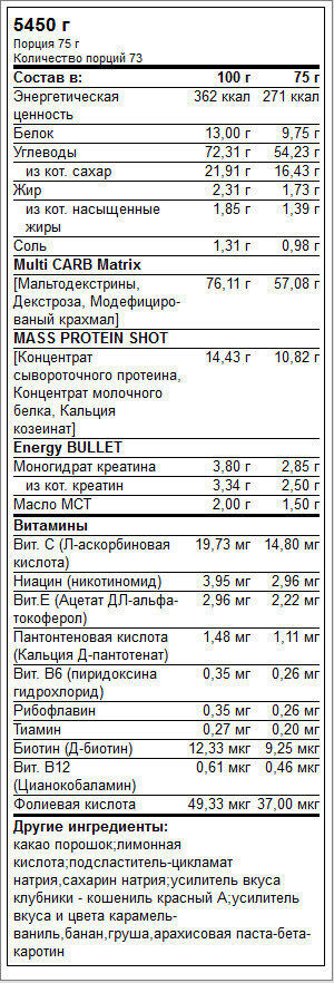 Гейнер Magnum 8000, 5450 г, вкус: клубника