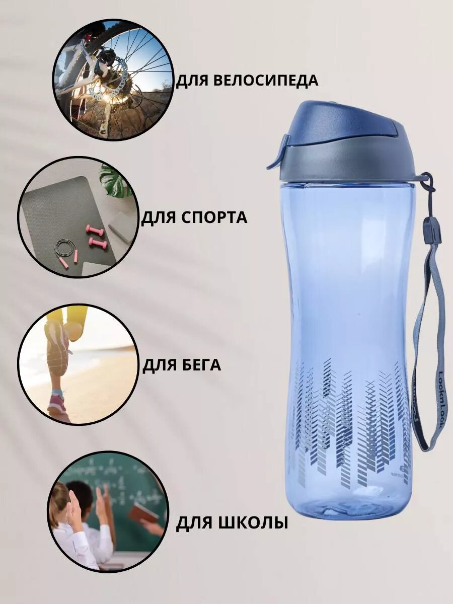 Бутылка для воды спортивная пластиковая с крышкой дорожная многоразовая автомобильная на сумку, Sports, 650 мл., синяя