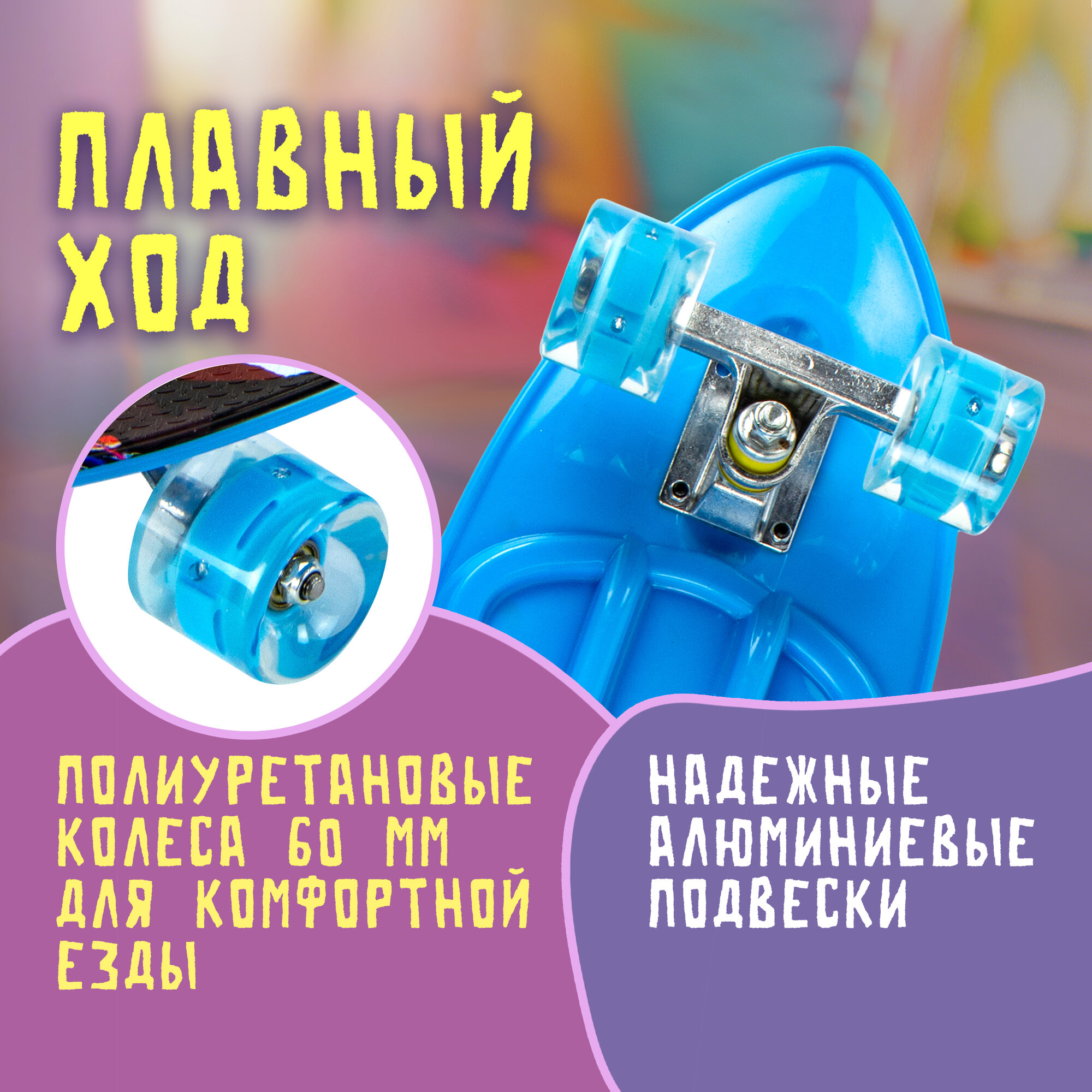 Cкейтборд детский Navigator для девочек и и мальчиков, пенни борд со светящимися полиуретановыми колесами, алюминиевыми траками, двумя ручками для переноски, скейт с ярким принтом