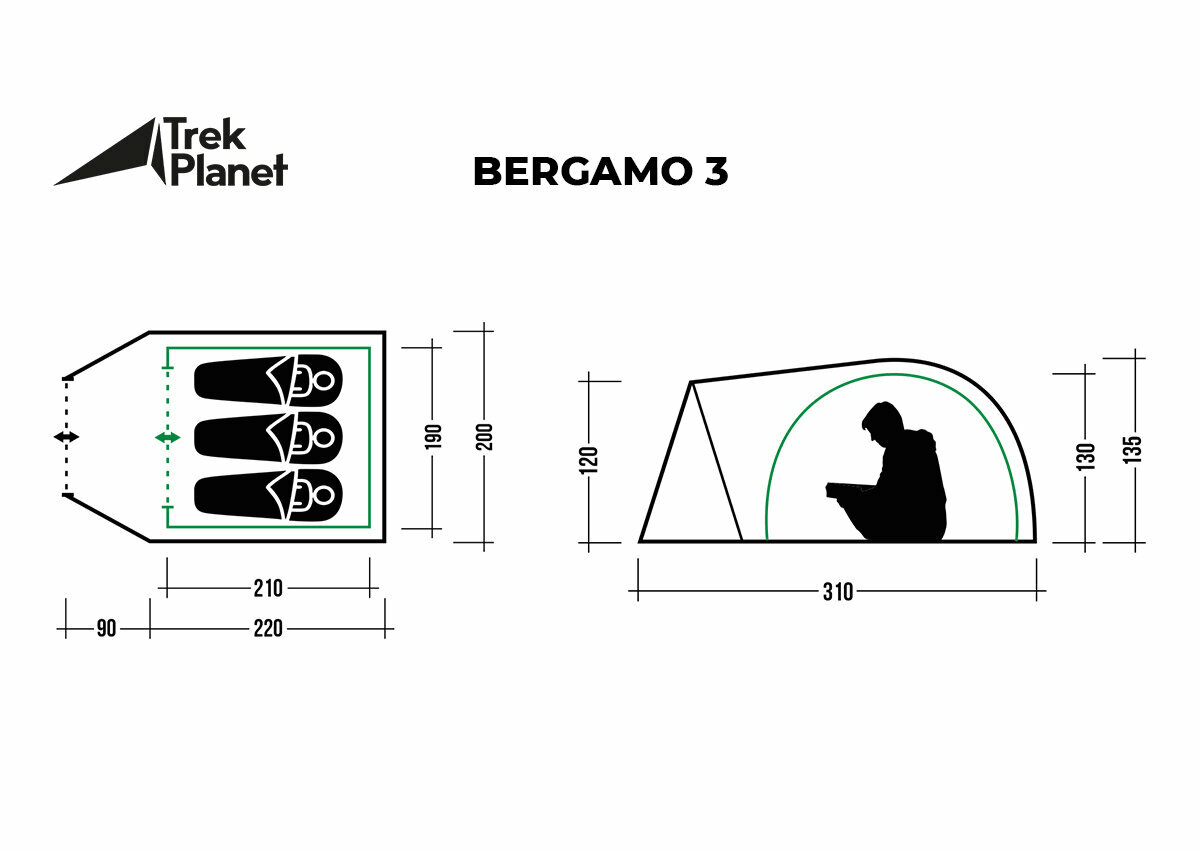TREK PLANET Палатка трехместная Bergamo 3, зеленый 70205