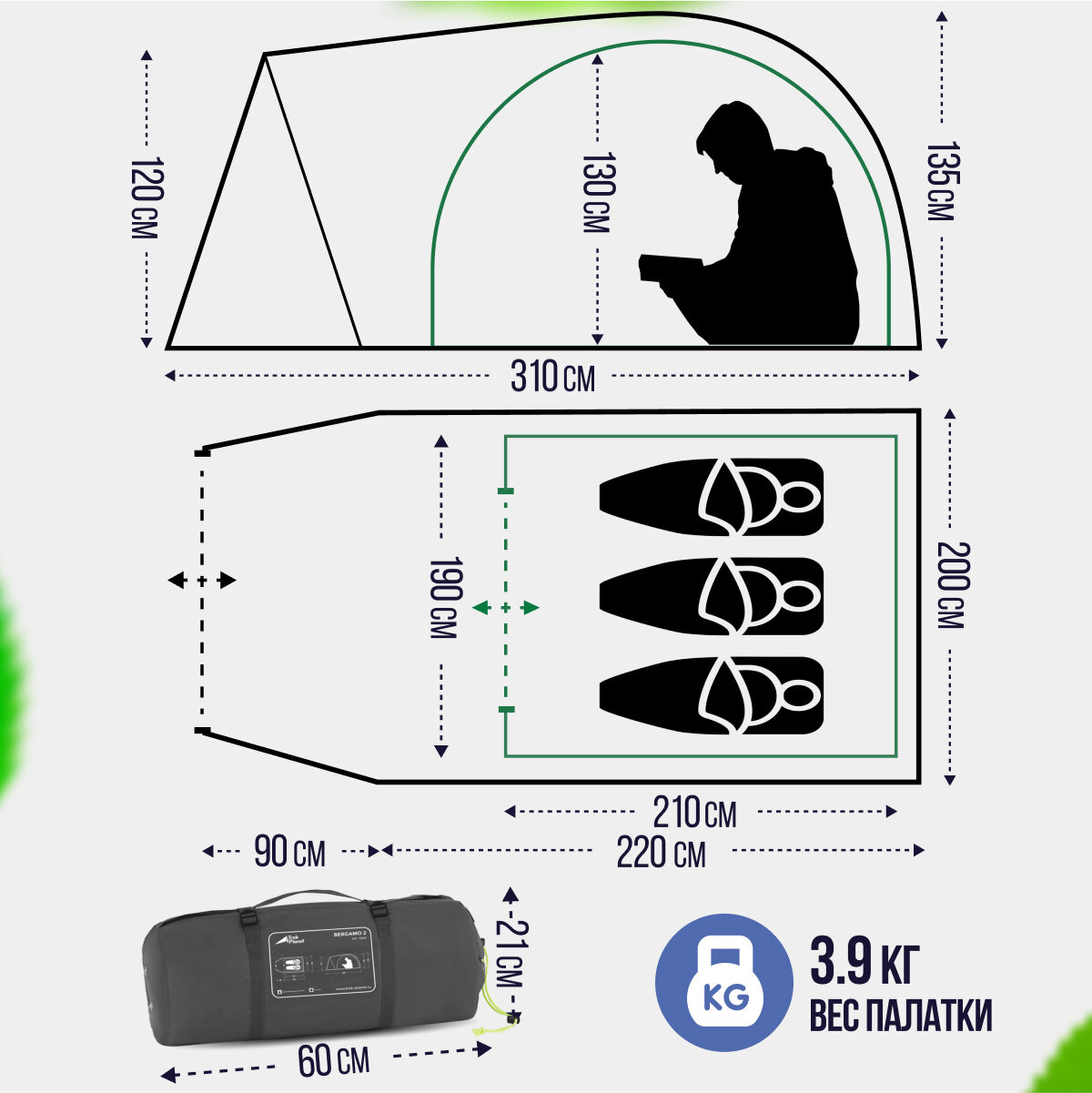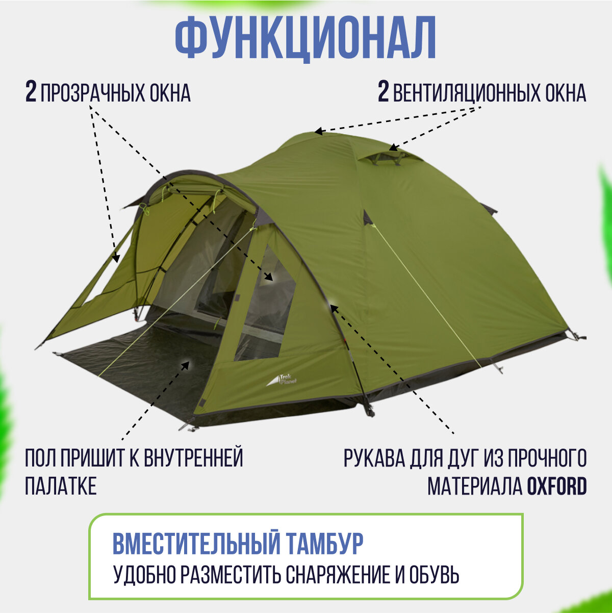 Палатка трехместная TREK PLANET Bergamo 3, цвет: зеленый