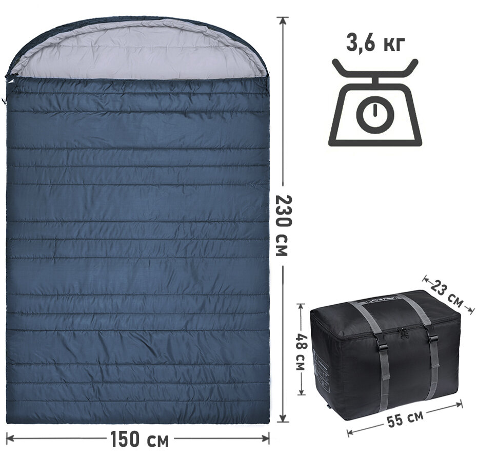 Спальный мешок TREK PLANET Aosta Double, двухместный, две молнии, цвет: синий