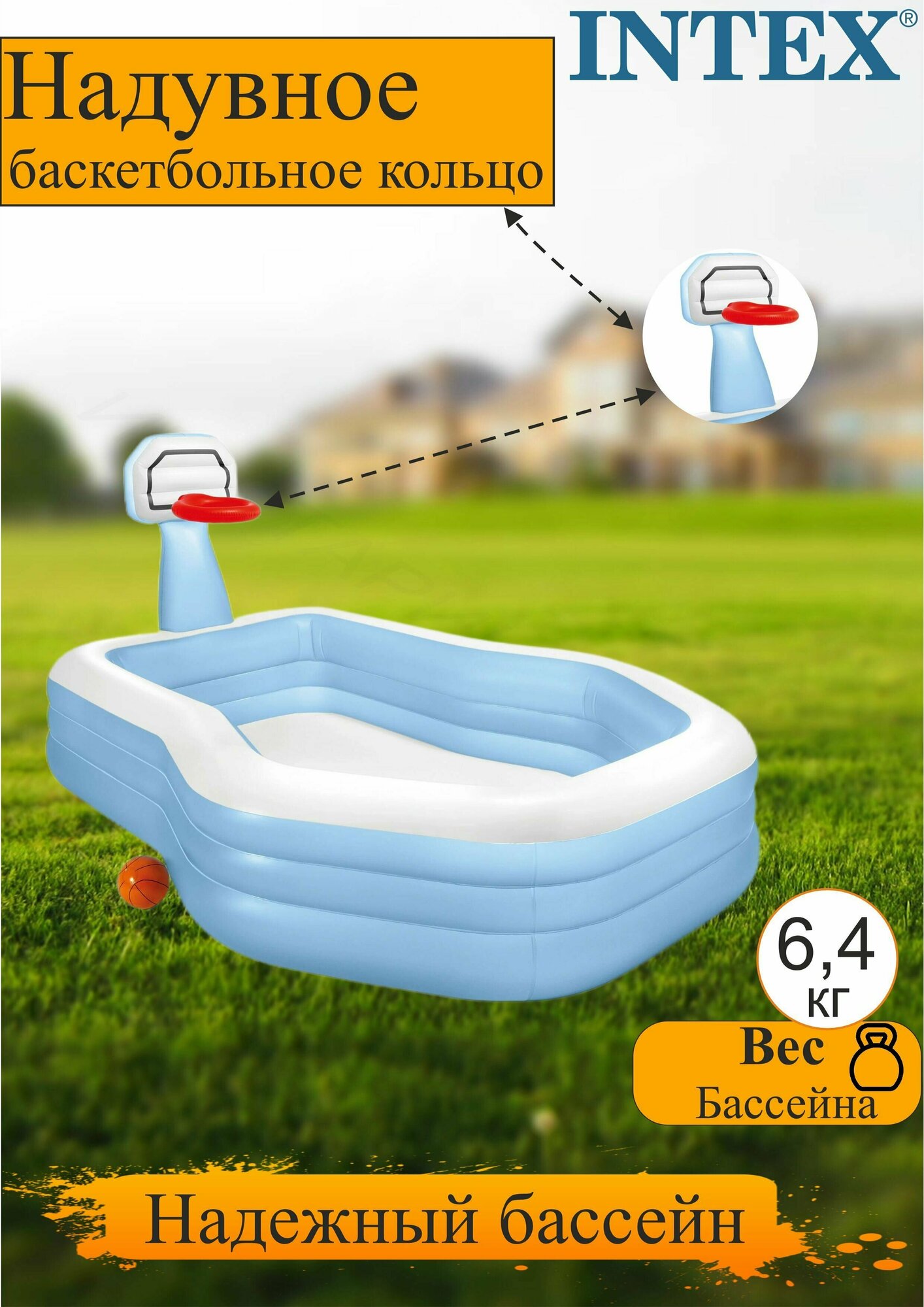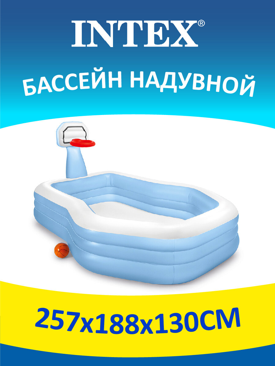 Бассейн надувной семейный с баскетбольным кольцом и надувным мячом, 257х188х135 см, 57183NP Intex