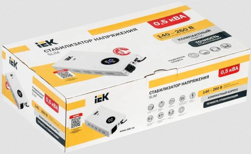Стабилизатор напряжения однофазный IEK Slim 1кВА (IVS22-1-001-09) белый 1000 ВА 175 мм 72 мм 300 мм 3.02 кг