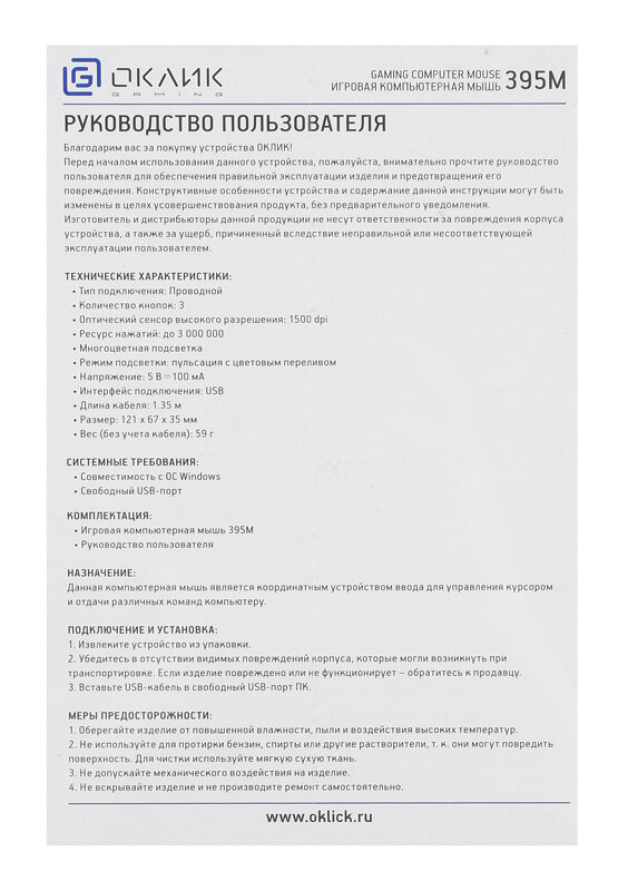 | Отзыв: | Искал что то похожее на геймерскую, но без особого фанатизма. Мышью удобно пользоваться, клик мягкий и задержки нет никакой. Колесико при скроле не проскакивает само по себе. |