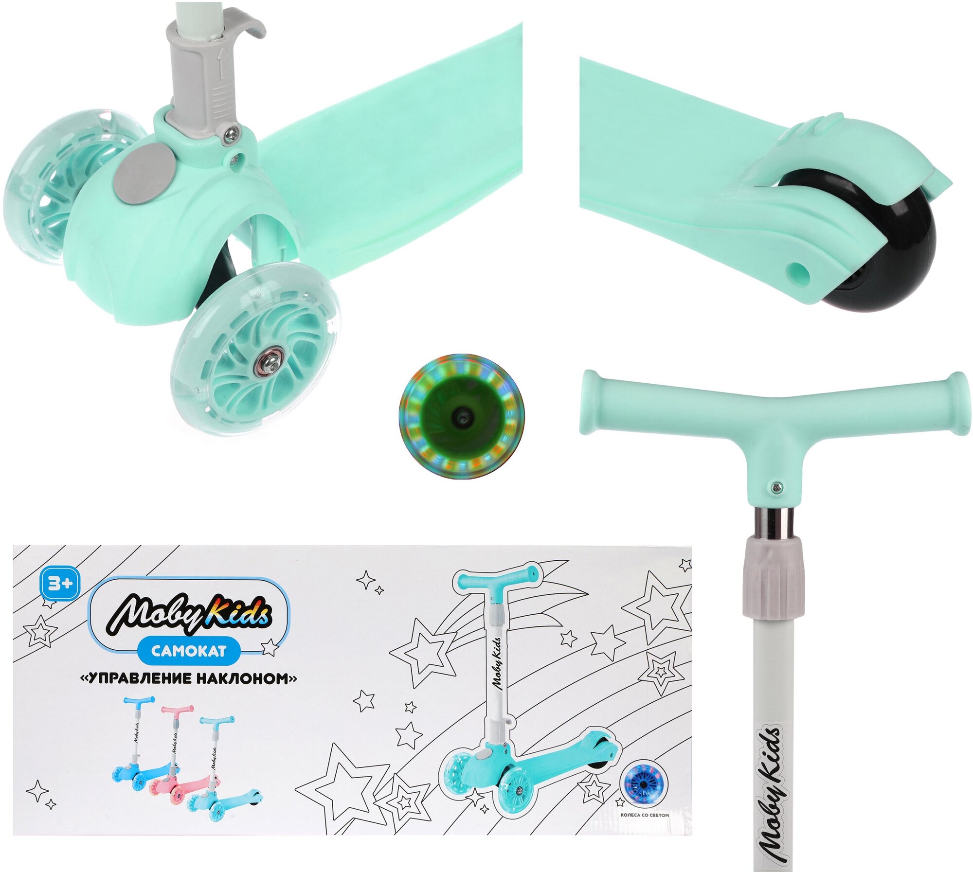 СохранитьСамокат Moby Kids, складной, 120 PU со светом, мятный интересное: