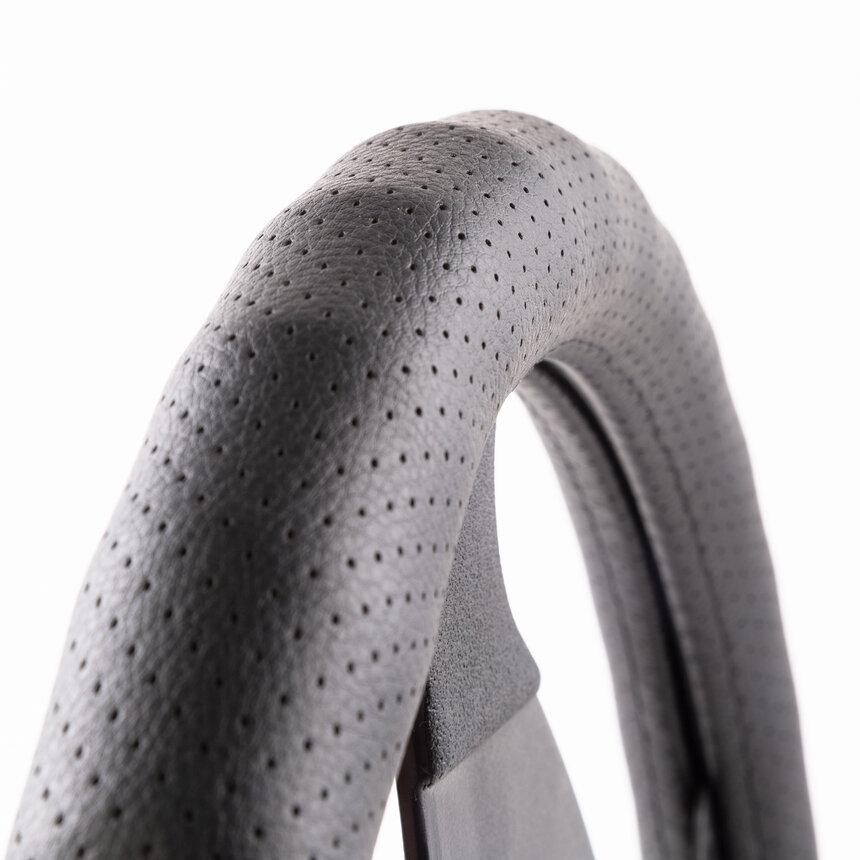 Оплетка руля AUTOPROFI AP-1912 D.GY (M) с увеличенным обхватом 9 см., композитная экокожа перфорированная, ребристая основа. тёмн.серый, разм. М,