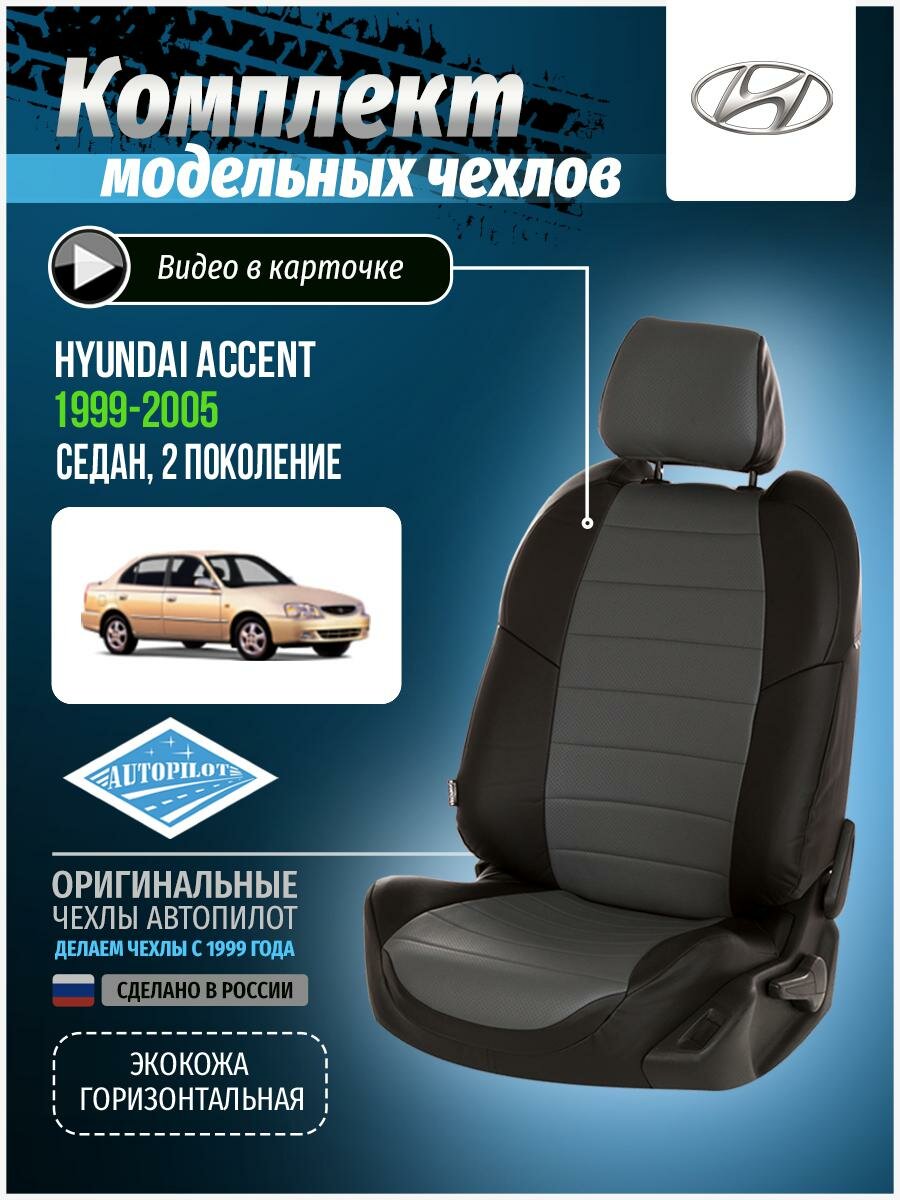 Чехлы для Hyundai Accent 2 1999-2005 Автопилот Серый Экокожа kha-ats-as-chese-e