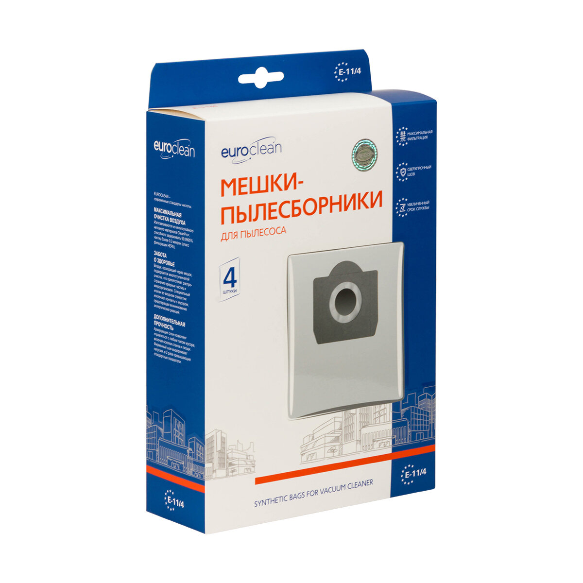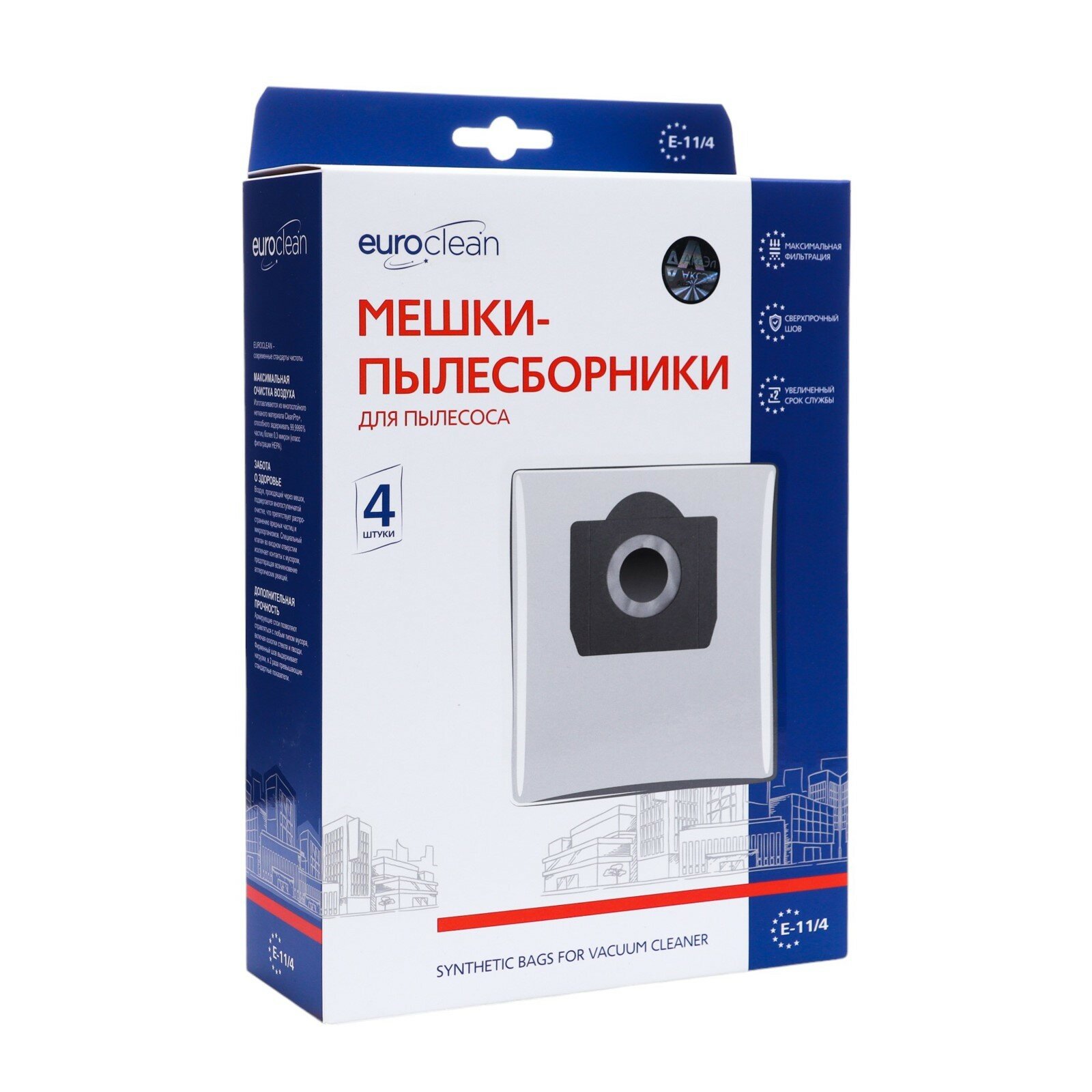 EURO CLEAN E-11 Многослойные синтетические мешки-пылесборники для пылесоса (уп. 4 шт)