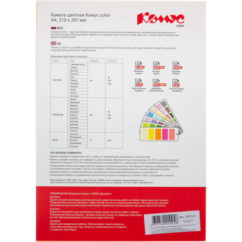 Купить Бумага цветная Комус Color (оранжевый неон) 75+-5гр, А4, 50 л