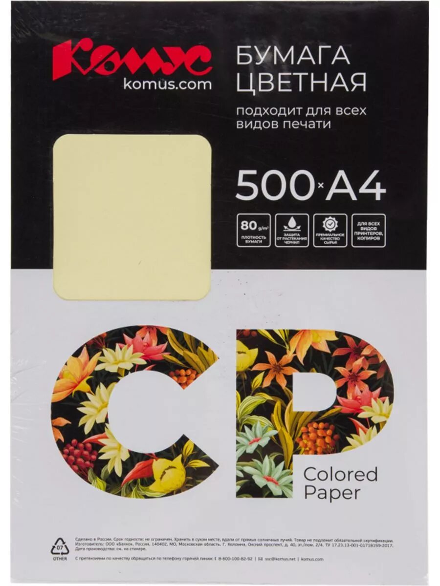 Купить Бумага цветная CP (А4,80г,желтый пастель YE23) пачка 500л