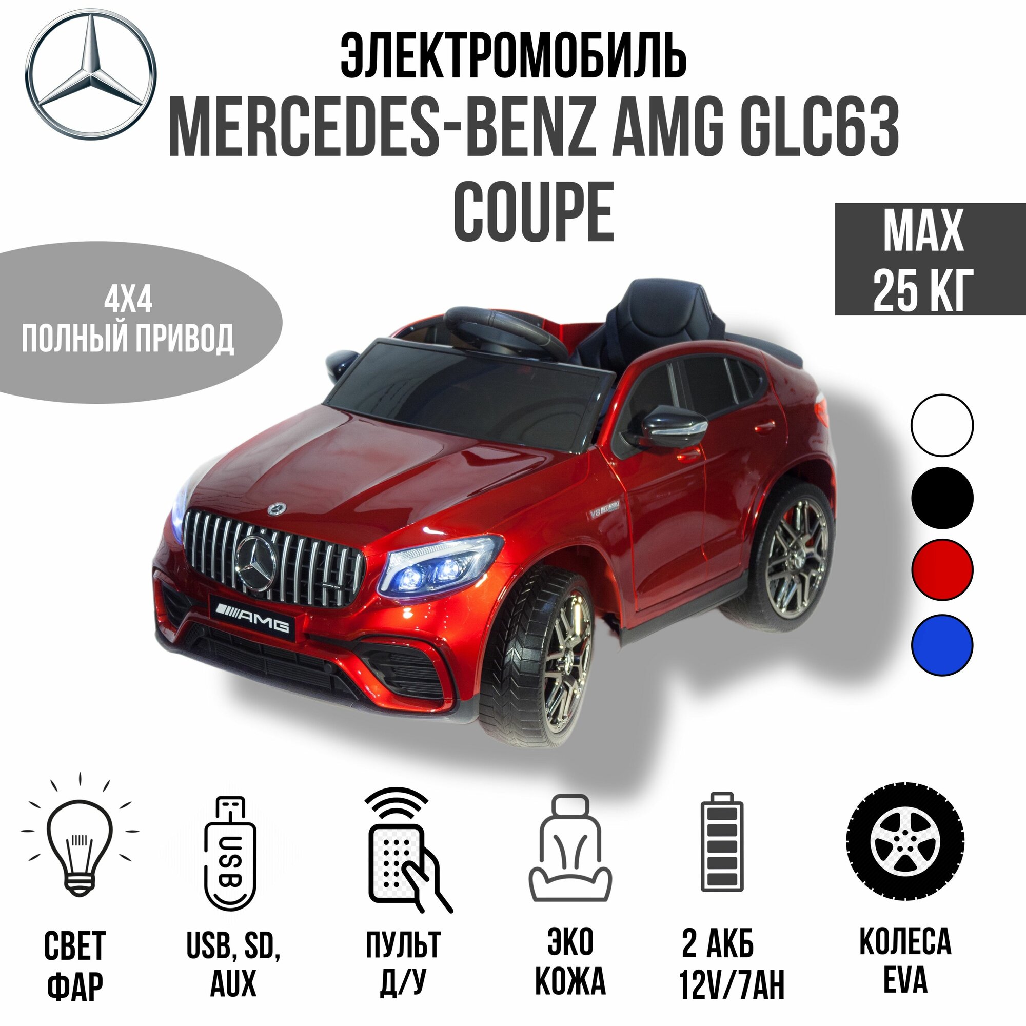 Электромобиль Mercedes-Benz AMG GLC63 2.0 Coupe 4x4 (красный краска)