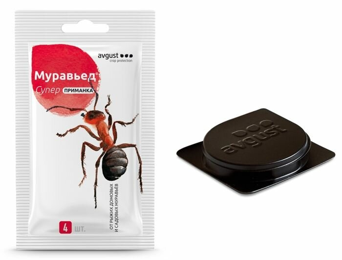 Приманка avgust Муравьед Супер от рыжих домовых и садовых муравьев, 6 г, 6 мл, 4 шт.