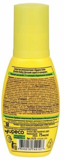 Средство от комаров для детей от 3-х мес, детский спрей от комаров от 3-х мес, Gardex Baby, 75 мл