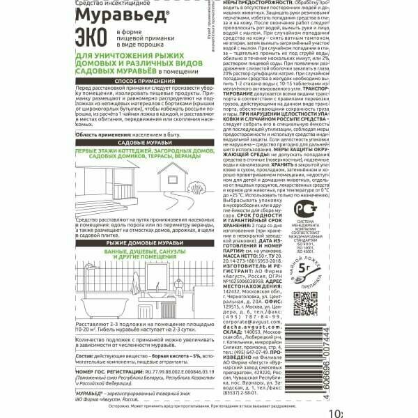 Порошок avgust Муравьед ЭКО от всех видов садовых и рыжих домовых муравьев, 50 г
