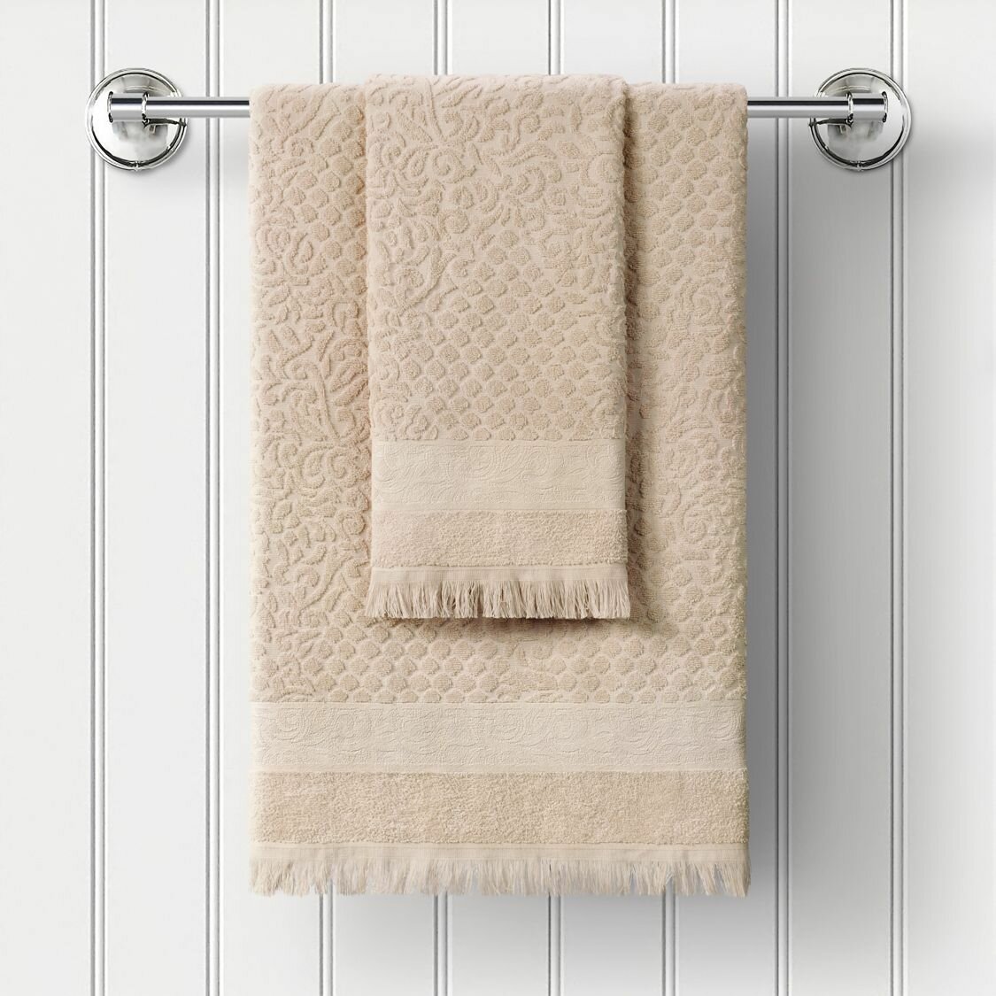 Махровое полотенце с жаккардом (1 шт) "Буше" Guten Morgen (кремовый), Полотенце 50x90