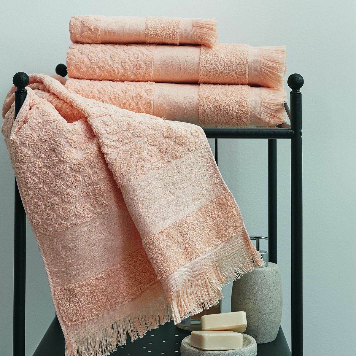 Купить Полотенце махровое жаккардовое, Guten Morgen, 50х90, Буше, Персик, хлопок 100%, 400г/м2
