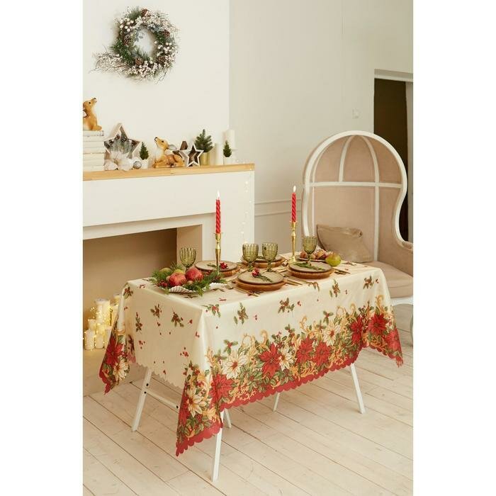 Скатерть новогодняя "Домашний уют" 145*180 см, 100% п/э