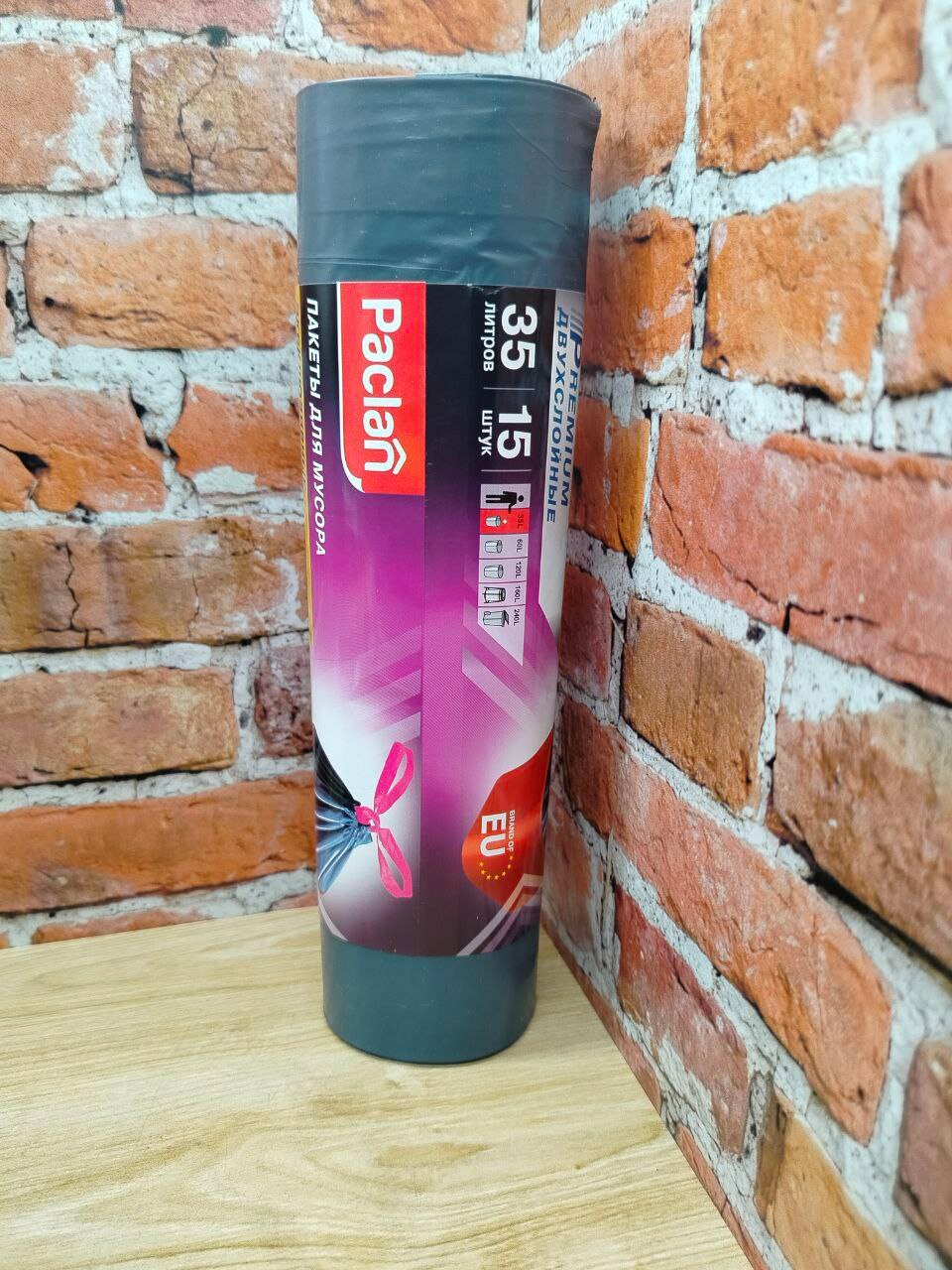 Paclan Мешки для мусора с тесьмой PREMIUM 35л 15шт. (ПВД)