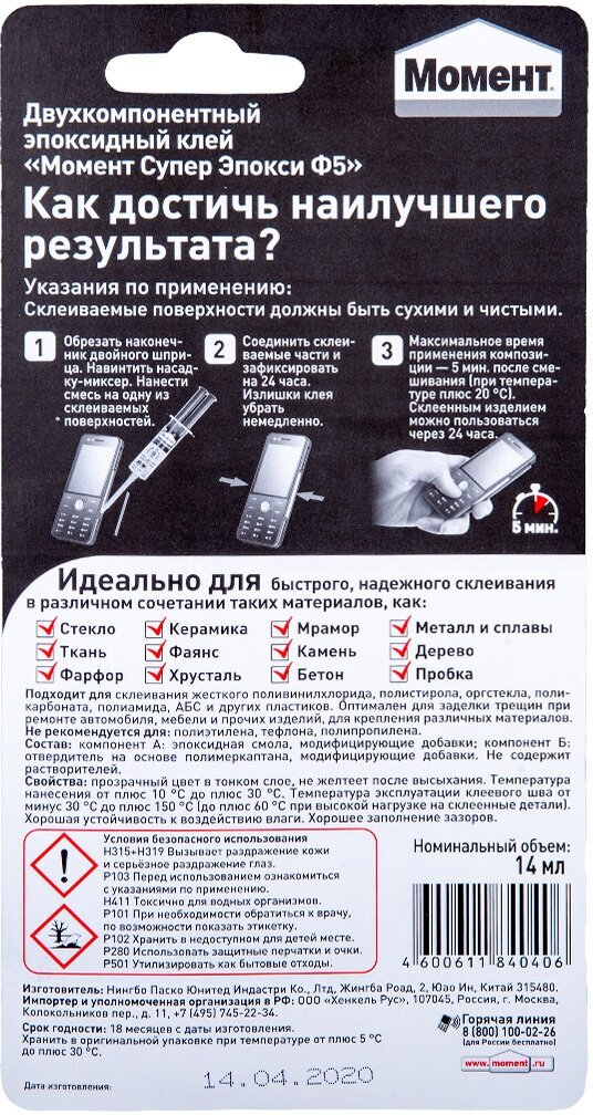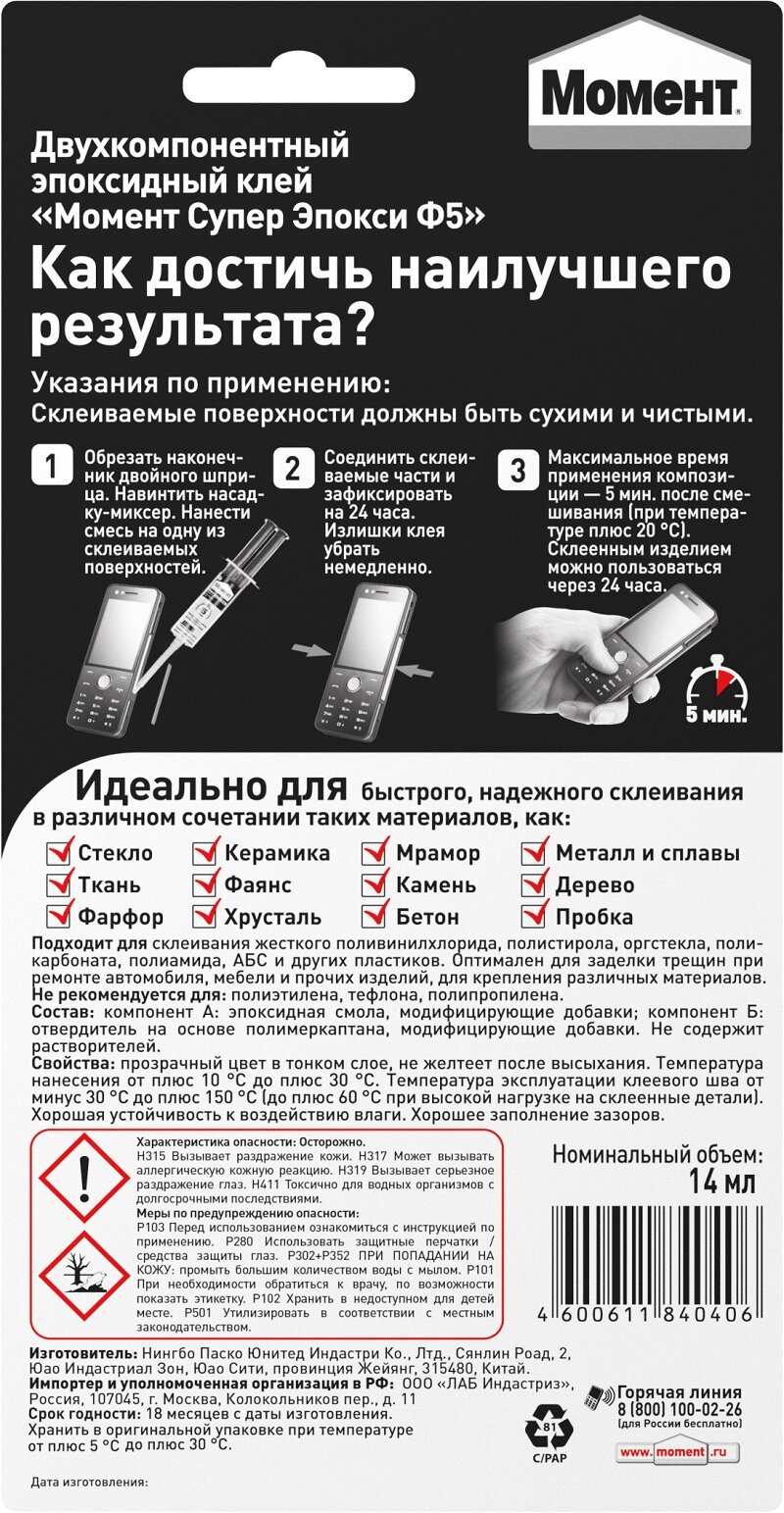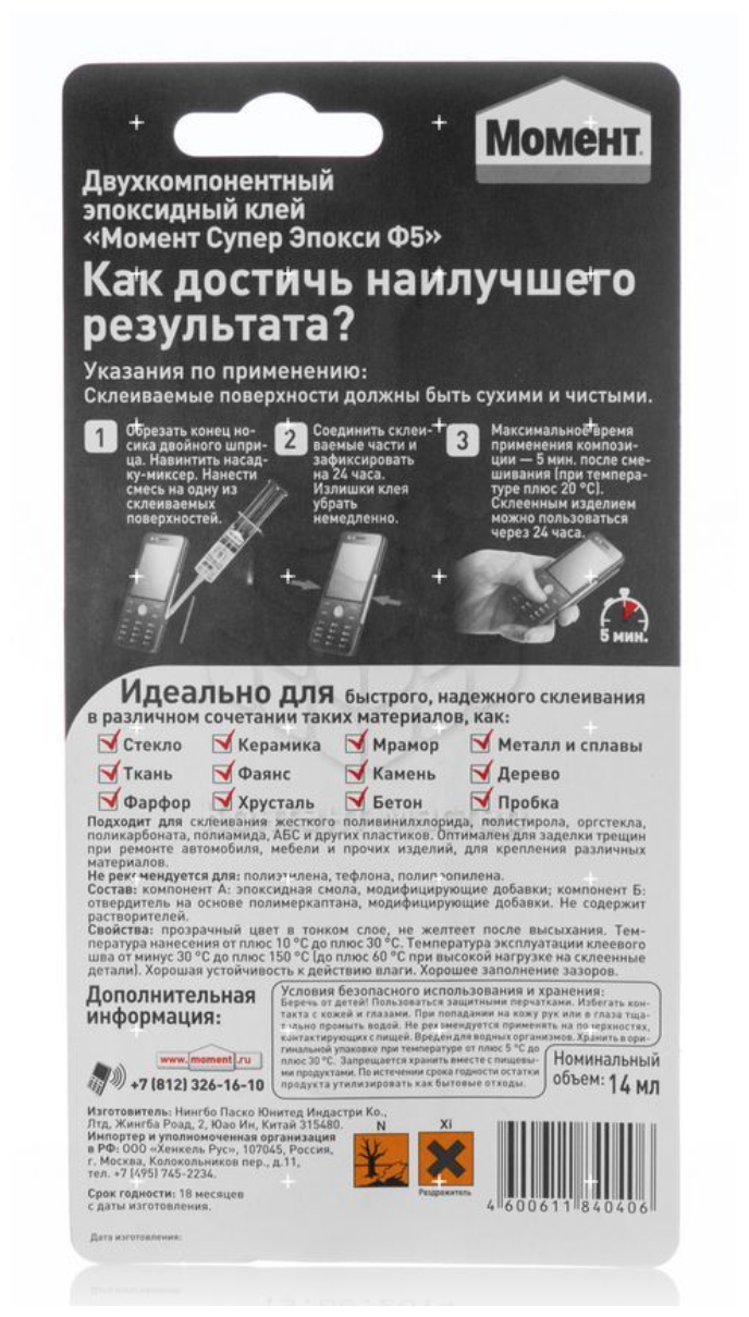 Ниже Вы можете прочитать отзывы на Клей Момент Супер Эпокси Формула 5 прозрачный, 14 мл (1405797), ознакомится с подробными характеристиками, посмотреть интересные обзоры и фотографии на Клей Момент Супер Эпокси Формула 5 прозрачный, 14 мл (1405797).