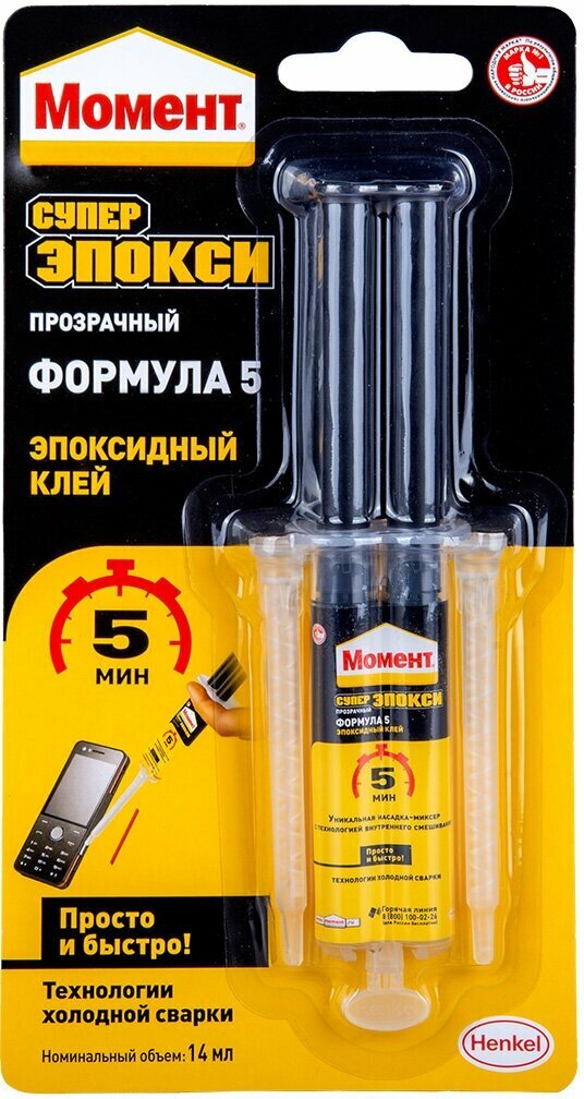 Купить Клей Момент Супер Эпокси Формула 5 прозрачный, 14 мл (1405797)