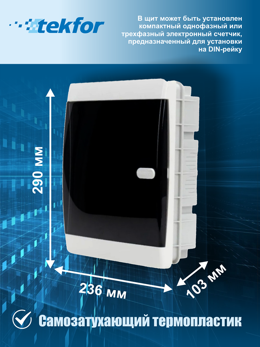 Распределительный щит Tekfor, встраиваемый 12 модулей IP41, прозрачная черная дверца серии С