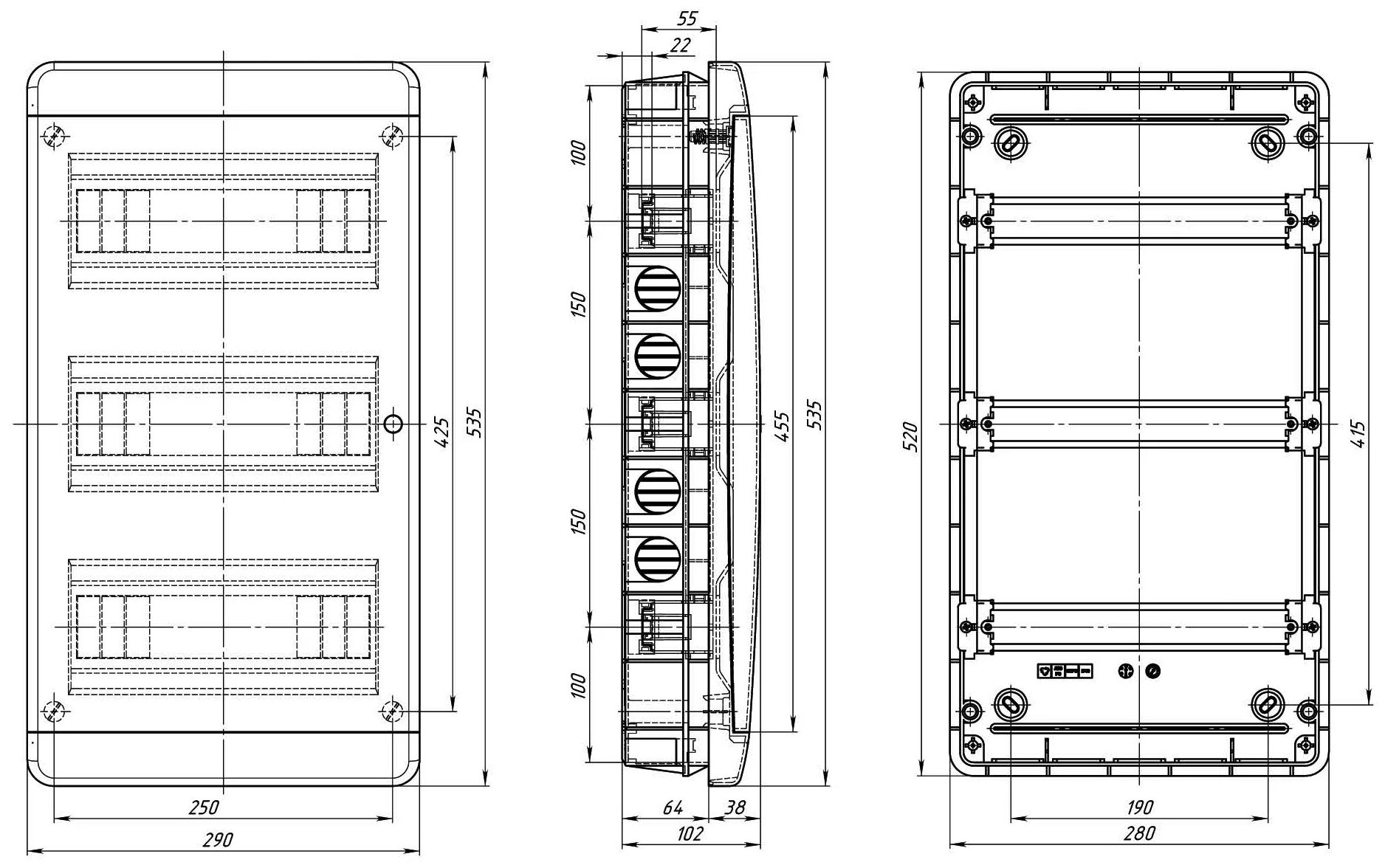 | Плюсы: | прекрасный российский щиток для квартир. Просторный внутри, хороший по цене. дверка не перевешивается, но лицевую панель можно перевернуть без проблем. |
